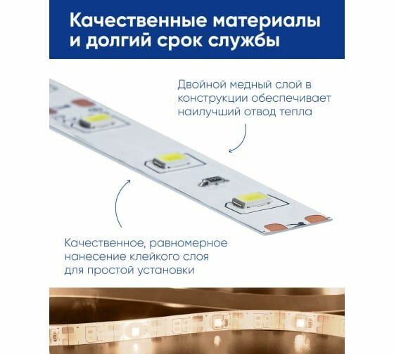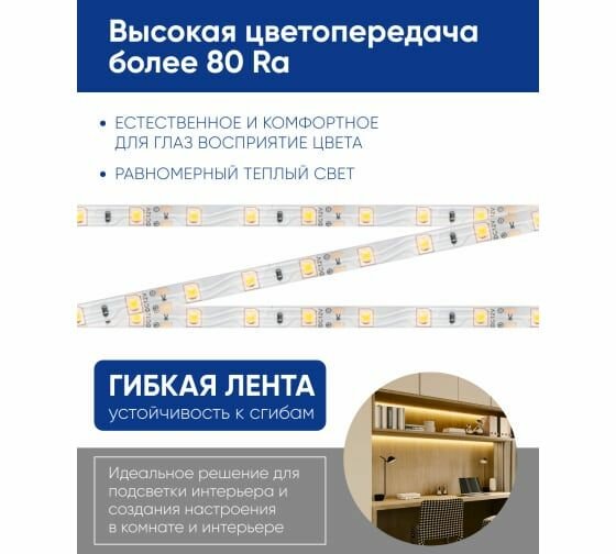 Лента с инновационными светодиодами SMD 2835, обеспечивающими повышенную яркость и световой поток.