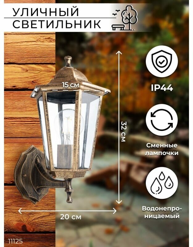 Светильник уличный настенный E27 Feron PL6101 серии Классика в официальном магазине бренда Feron - изысканное решение для создания уютной атмосферы в Вашем саду, сквере, патио или на террасе. Фонарь фасадный имеет утонченный внешний вид, напоминающий о старинных парках и дворцах, ведь классика всегда актуальна. Бра настенное идеально впишется в любой ландшафтный дизайн, добавляя нотку благородства и аристократизма. Гарантия 12 месяцев - еще один весомый аргумент в пользу бренда Feron с 25-ти летней историей.Источником света в уличном светильнике являются светодиодные лампы е27 (для Вашего удобства в комплект не входят), это делает его более удобным в эксплуатации и позволяет с лёгкостью менять LED лампы по мере необходимости. А также Вы можете установить датчик освещенности или датчик движения на фонарь настенный. Корпус фонаря уличного изготовлен из прочного металла, устойчивого к воздействию погодных условий. Приобретая бра уличное бренда FERON, Вы делаете выбор в пользу качества, надежности и эстетики!Feron - это лидирующий бренд на светотехническом рынке России. Более 25 лет производим и реализовываем качественную свето- и электротехнику. Все товары тестируются в собственной лаборатории, абсолютно безопасны, без вредных пульсаций. А приобретая уличные светильники в официальном магазине Feron, Вы обеспечиваете себе качественное гарантийное обслуживание и исключаете вероятность покупки подделок.
