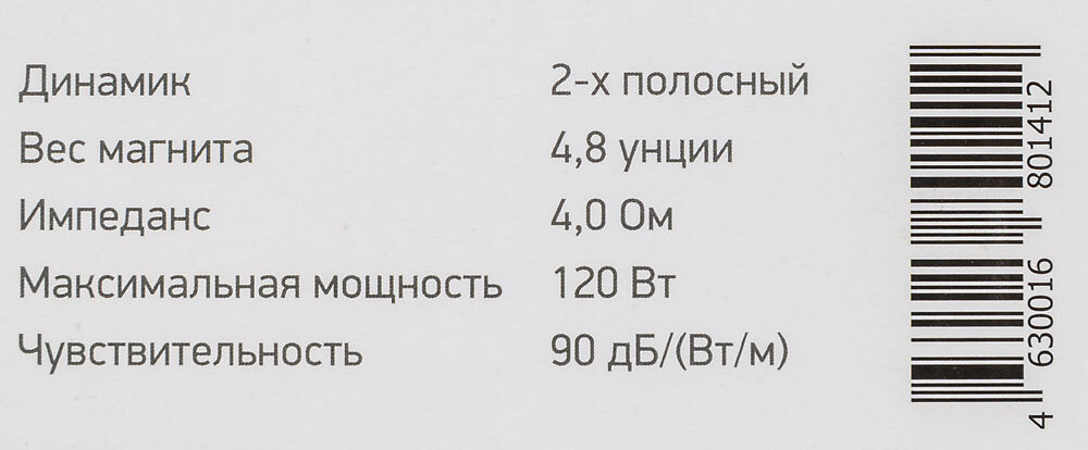 Обман с характеристиками, колонки по факту 1 полосные , вместо ВЧ динамика муляж , к нему просто подходят провода , на самом ВЧ динамике нет ни обмотки ни конденсатора , покупал 5 комплектов , один разломал а остальные поеду сдавать.Звук без ВЧ сами понимаете какой .А марку Digma в жизни никому не посоветую.