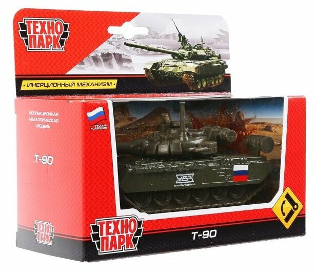 Игрушка Технопарк Танк T-90 металл. инерц. 12 см башня вращается (SB-16-19-T90-G-WB)