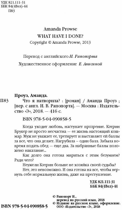 Книга: Что я натворила? (Рапопорт Илья Владимирович (переводчик), Проуз Аманда); Эксмо, 2018