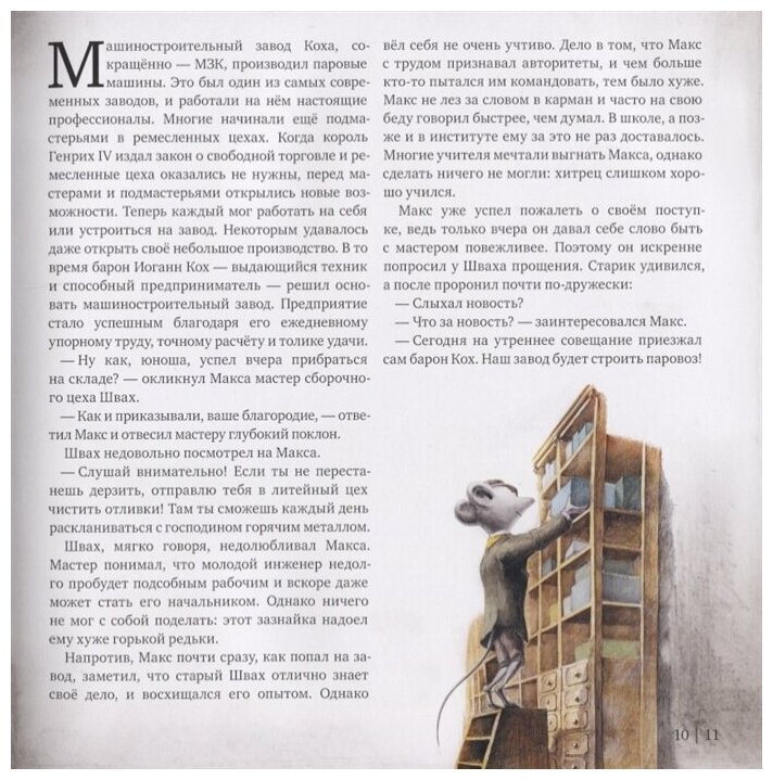 Читайте занимательную историю, которая перенесет вас на 180 лет назад. Проследите за карьерой молодого инженера Макса Резнера и историей его любви. Изучите технические тексты и рассмотрите схемы, которые объясняют работу паровоза и устройство железной дороги. Обсуждайте книгу всей семьей, пусть дети расскажут все, что узнали, своим друзьям.