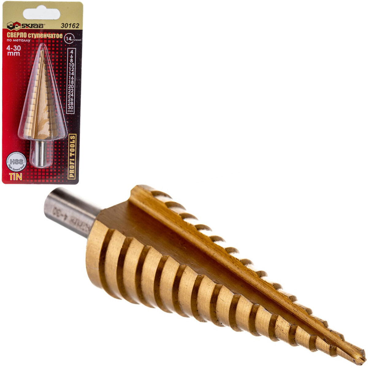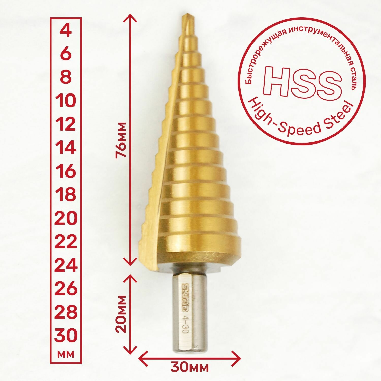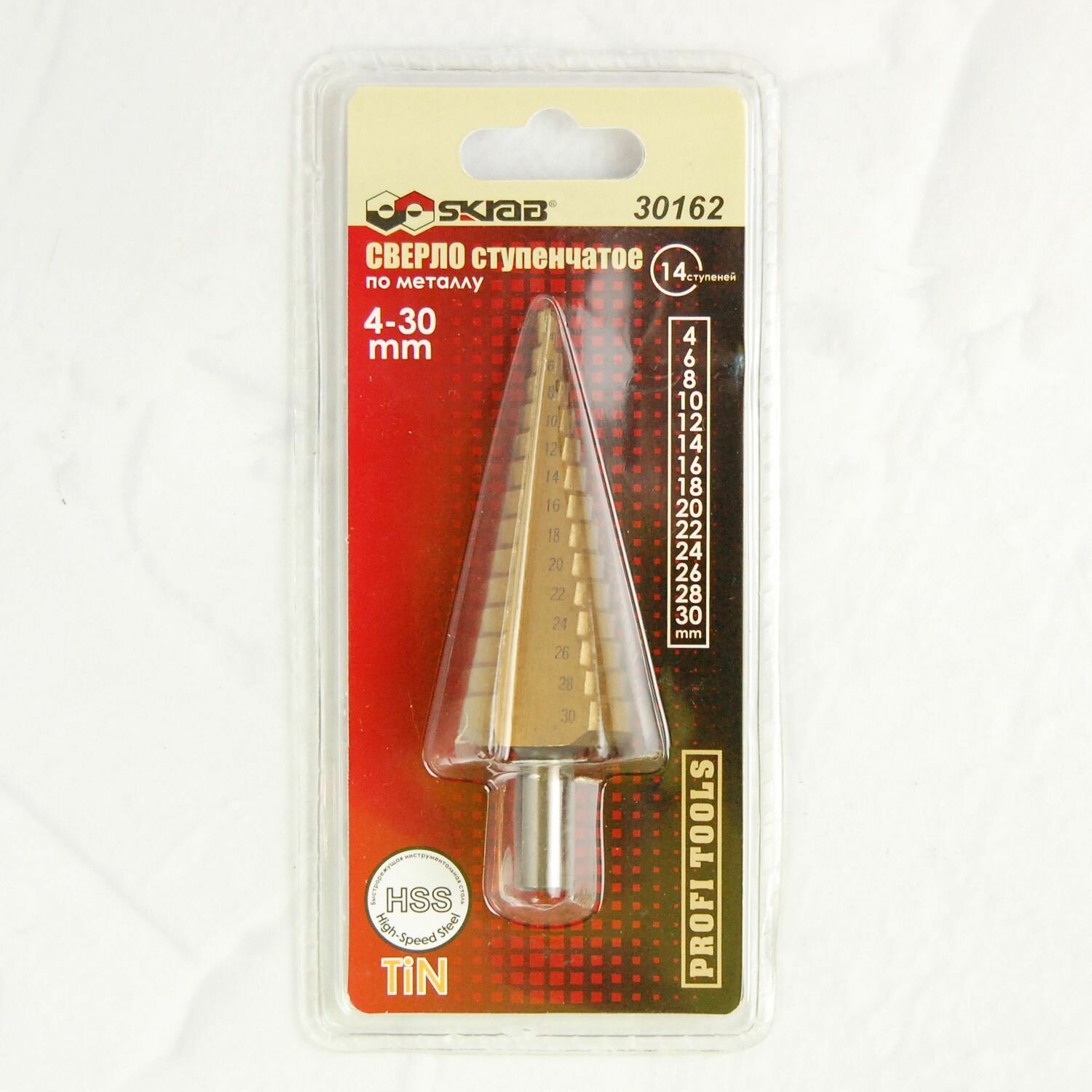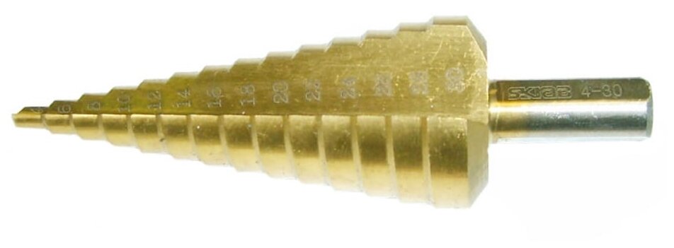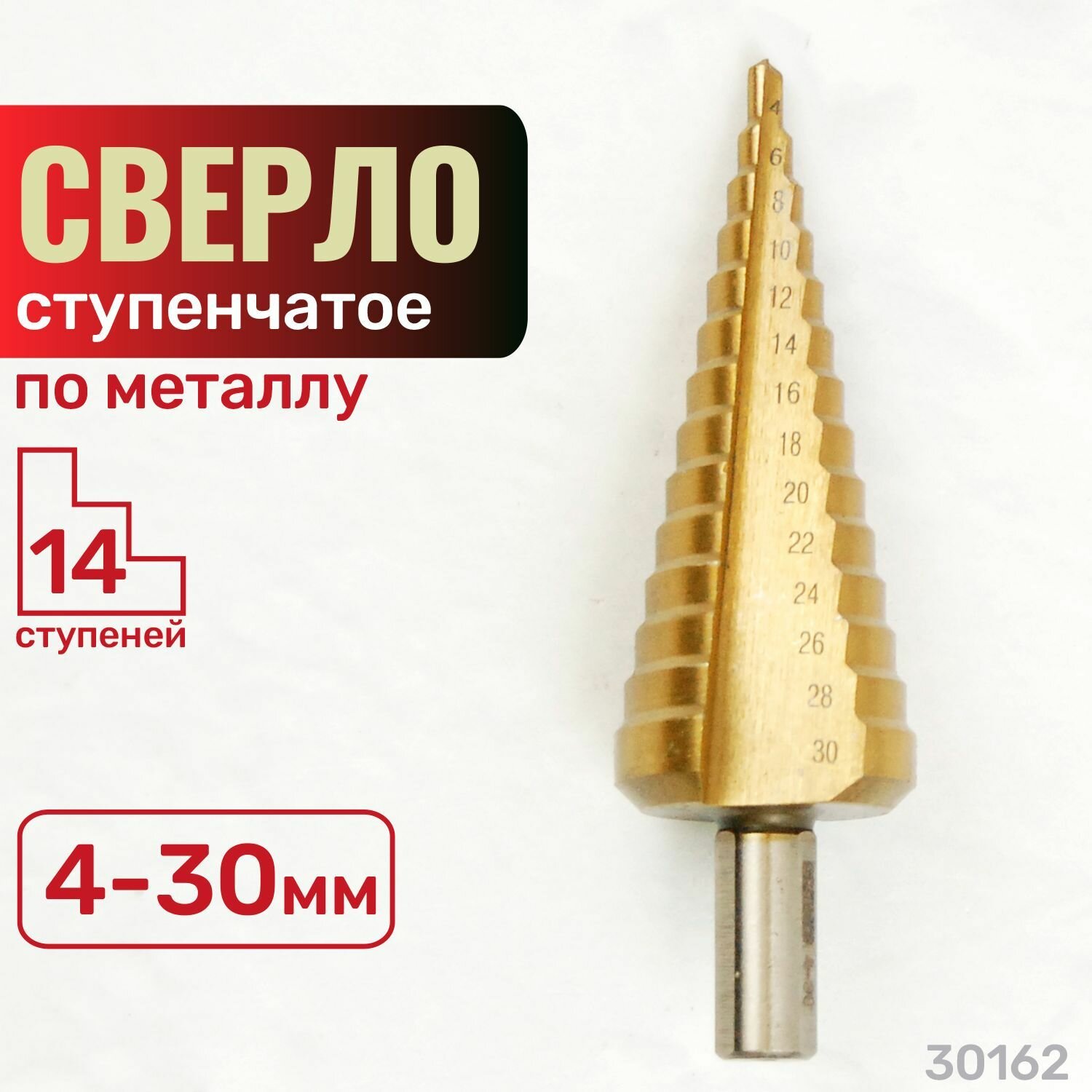 | Прочие особенности и свойства | Сверло по металлу ступенчатое 4-30 мм, 14 ступеней |