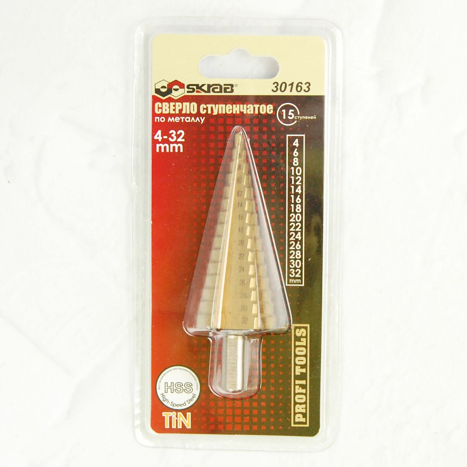 | Прочие особенности и свойства | Сверло по металлу ступенчатое 4-32 мм, 15 ступеней |
