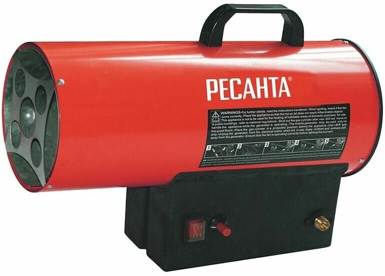 Газовая тепловая пушка Ресанта используется для обогрева больших помещений с хорошей вентиляцией. Металлическая решетка на сопле препятствует попаданию внутрь устройство различных предметов. Ручка, расположенная на корпусе, упрощает транспортировку тепловой пушки. Предусмотрена защита от перегрева. Это очень выгодная покупка, так как работает на сжиженном газе. Как выбрать обогреватель.