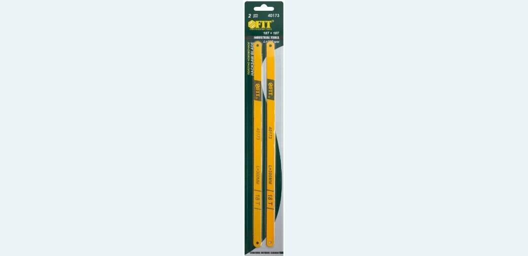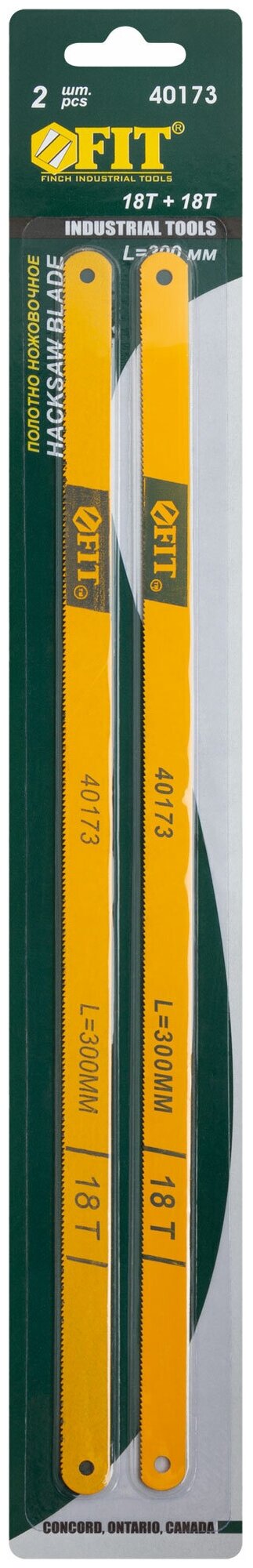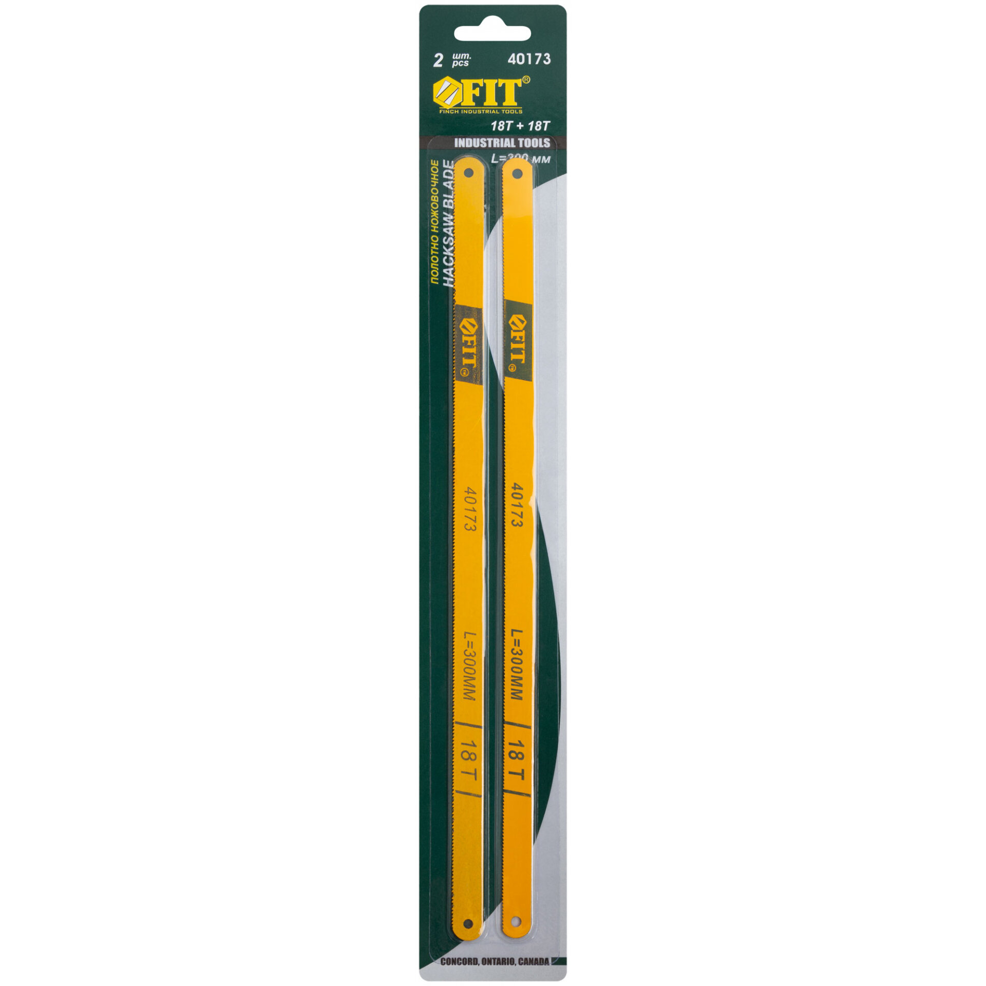 Полотно для ножовки по металлу 300 мм FIT (18Т, гибкое, одностороннее, сталь 20Cr, калёный зуб, 2 шт.)