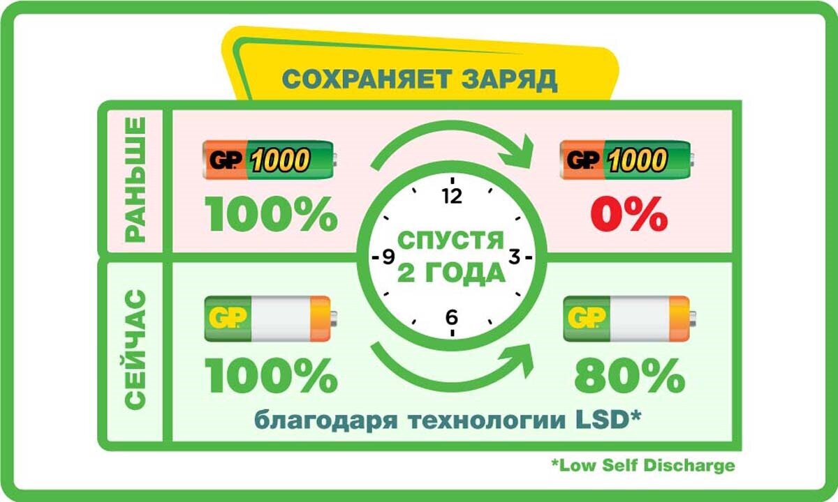 Аккумуляторы GP GP быстро заряжаются, долго держат стабильное и ровное напряжение без перепадов и поэтому являются прекрасным источником питания для аудиоплееров, фотоаппаратов, портативных игровых консолей и прочих цифровых устройств.