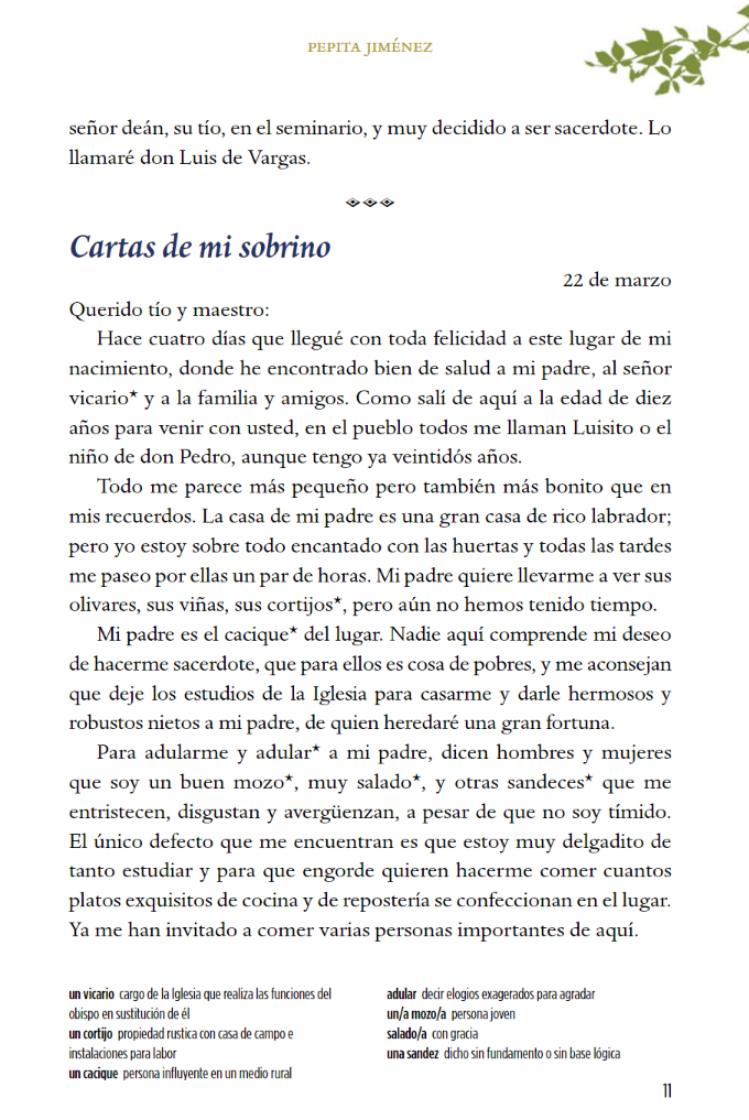.de ordenarse sacerdote. Su padre, don Pedro, se dispone a contraer nupcias con Pepita Jimenez, una