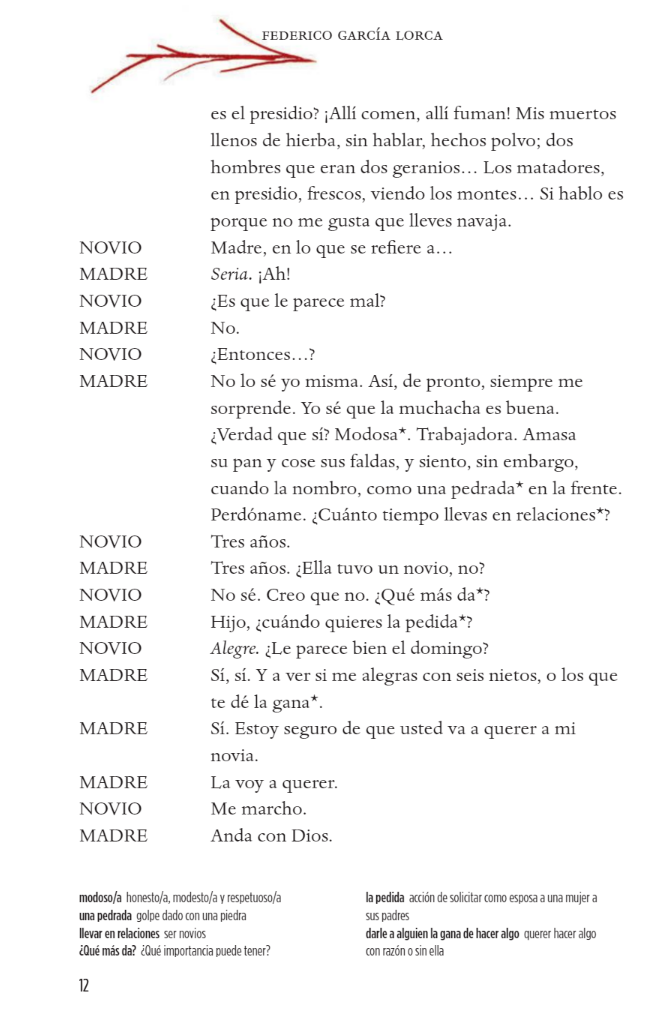 El novio у la novia van a casarse; pero ella у su antiguo novio Leonardo se siguen amando у la pasion que los une es mas fuerte que ellos. Varias muertes violentas han alimentado el resentimiento entre las familias de ambos hombres. La sombra de las navajas planea como un mal augurio у anuncia un final tragico...