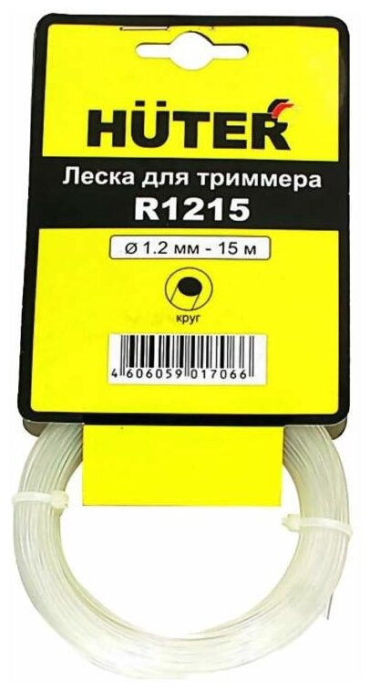 Леска Huter применяется с триммерами. Круглое сечение лески делает ее более прочной, поэтому такой вариант подходит для универсальных работ. Данная модель лески обладает улучшенными аэродинамическими свойствами, благодаря этому уменьшается шум при работе. В большинстве случаев используется для кошения сочной травы, а также сухостоя и мелких кустарничков.