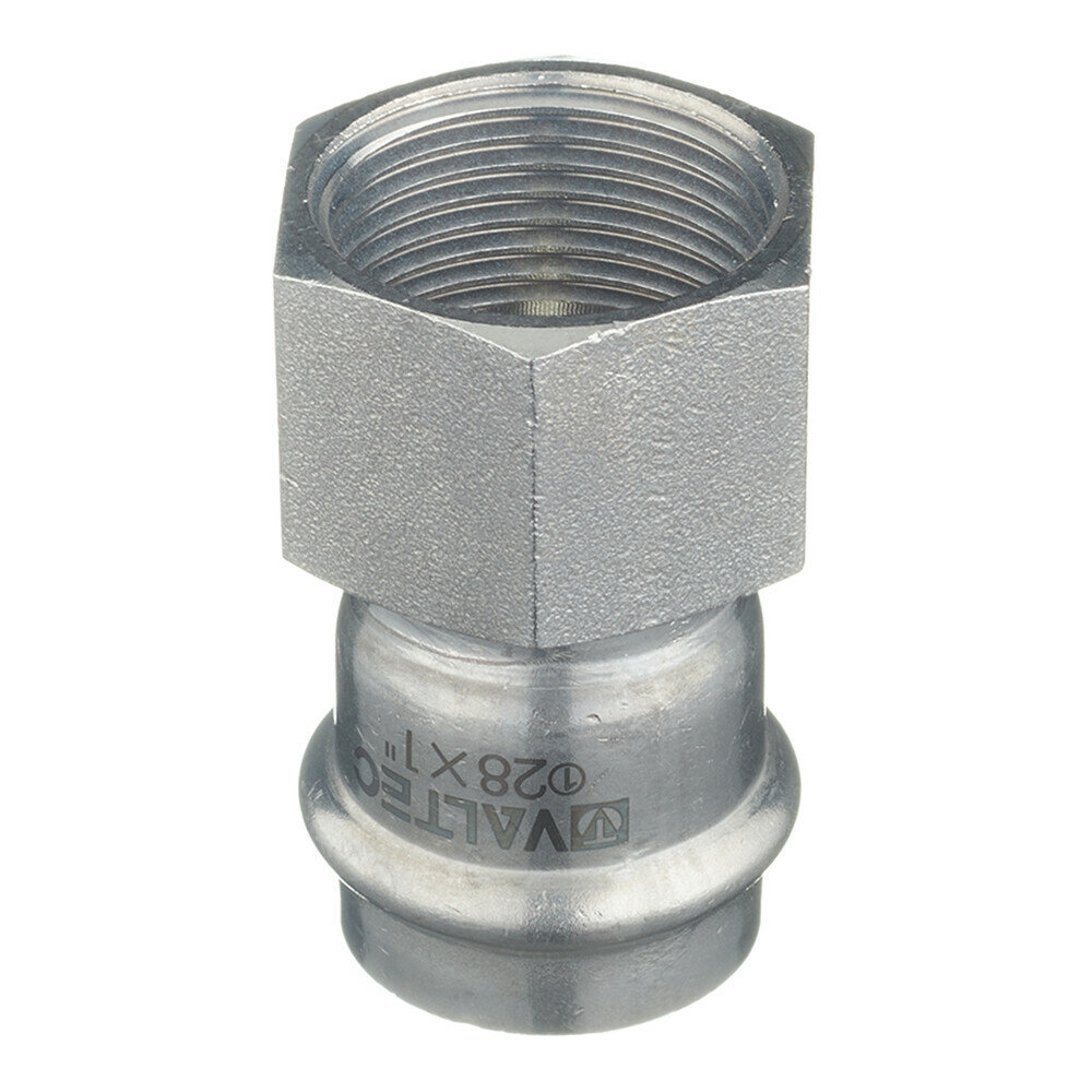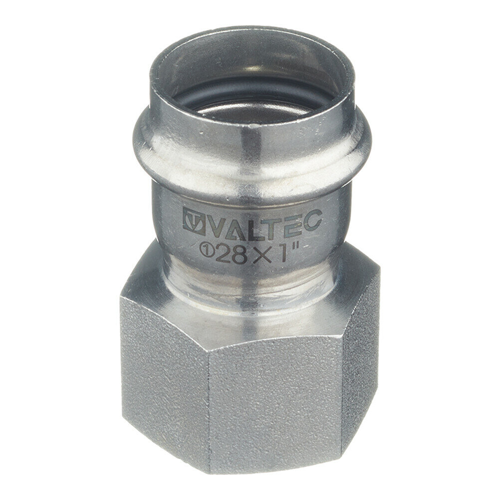 Пресс-фитинг 28х1" мм из нержавеющей стали с внутренней резьбой обеспечивает соединение тонкостенной стальной трубы с резьбовым элементом монтируемой системы. Область применения – трубопроводы водоснабжения, отопления, иные инженерные и технологические установки с рабочей температурой до 95 °С и давлением до 16 бар. Концевой переходник с внутренней резьбой VTi.902.l изготовлен из стали AISI 304. Материал уплотнения – эластомер EPDM Sh70. Пресс-соединение – бесштуцерное. Обжатие производится с помощью пресс-инструмента V-профиля. Шестигранный – под гаечный ключ – участок корпуса облегчает монтаж резьбового соединения.