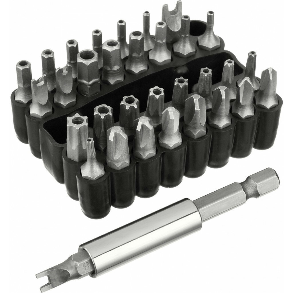 | Прочие особенности и свойства | Профессиональные биты для ручного и механизированного инструмента. Точная геометрия шлицов обеспечивает точную посадку в крепеже Высококачественная легированная хромованадиевая сталь обеспечивает высокую механическую прочность Адаптер с магнитным держателем обеспечивает быструю и надежную фиксацию насадки Предназначены для слесарных, монтажных и ремонтных работ. 32 биты, 25 мм:Double Pin 4, 6, 8, 10 TORQ 6, 8, 10 TX HOLE T8, 10, 15, 20, 25, 27, 30, 35, 40 TRY WING 1, 2, 3, 4 HEX HOLE 2, 2.5, 3, 4, 5, 6 HEX HOLE 5/64", 3/32", 7/64", 1/8", 9/64", 5/32" |