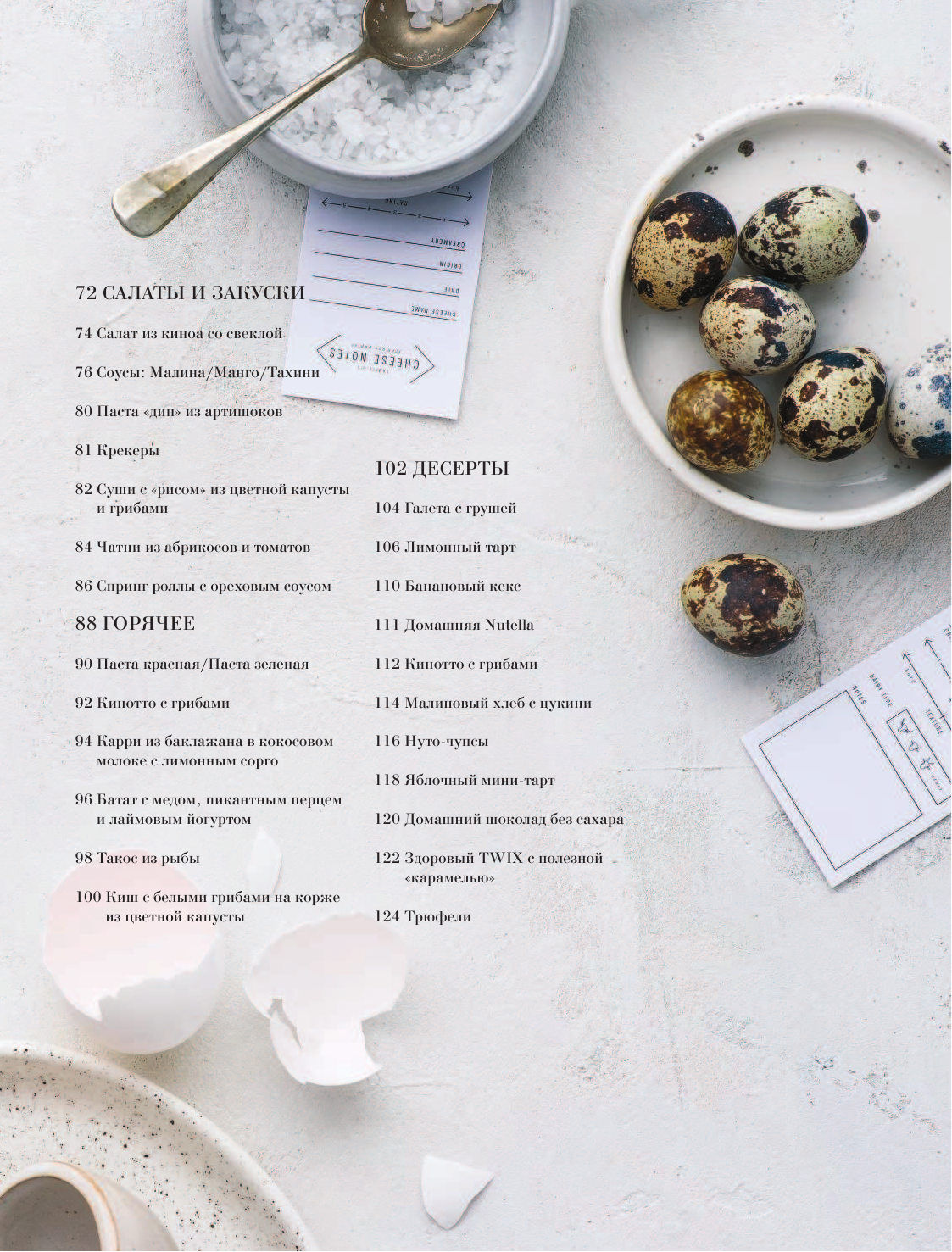 Теперь, так сказать, по "технической части": бумага плотная, качественная, фотографии "вкусные", книгу приятно держать в руках и все такое. Но редакторам минус - вычитывать надо внимательнее, чтобы потом не позориться предложениями типа "Смешать смешать в блендере..." (с.112) или сочетанием глаголов разной формы повелительного наклонения в одном параграфе. Если пишете "замочить", то дальше нужно писать "отварить" и "откинуть на дуршлаг", а не "отварите и откиньте" (с.117).