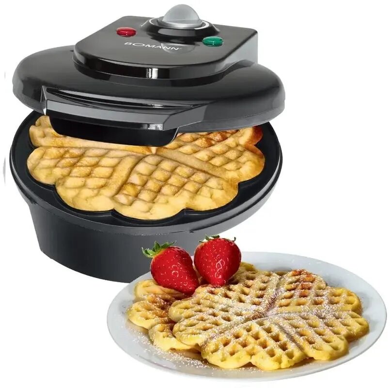 Позавтракать свежеиспеченными домашними вафлями теперь очень просто. Не потребуется тратить много времени и возиться на кухне или переплачивать в кафе за хрустящее любимое лакомство. Вафельница Bomann доставит кучу вкуснейшего удовольствия за считанные секунды. Напечь много вафель в форме сердца с такой вафельницей не проблема даже если времени на приготовление десерта совсем немного и гости уже у двери. Устройство функционирует на мощности, составляющей 1200 Вт, что обеспечивает быстроту выпекания и равномерную готовность теста по всей площади жарящей поверхности. Диаметр рабочей поверхности составляет 18 сантиметров, она разделена на пять сегментов, таким образом, за один прием можно приготовить сразу 5 вафель одинаковой формы в виде сердца. Дизайн прибора прост и современен, вафельница органично впишется на любой кухне. За счет резиновых ножек, расположенных на нижней платформе вафельницы ей обеспечена высокая степень устойчивости на рабочей поверхности.