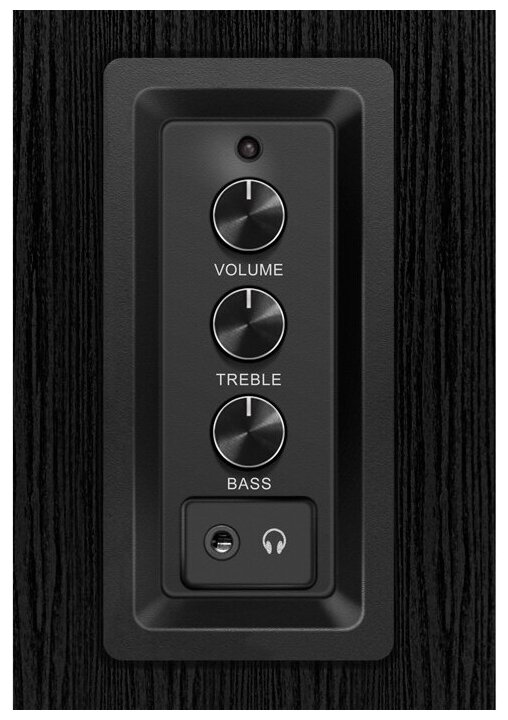 На правую боковую панель акустической системы вынесены удобные, интуитивно понятные органы управления - раздельная регулировка тембра и настройка громкости. Регуляторы работают очень плавно и позволяют производить тонкую настройку акустики по своему вкусу. Также на боковой панели находится разъем для подключения наушников.