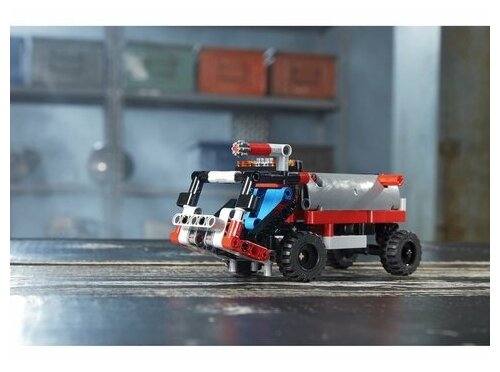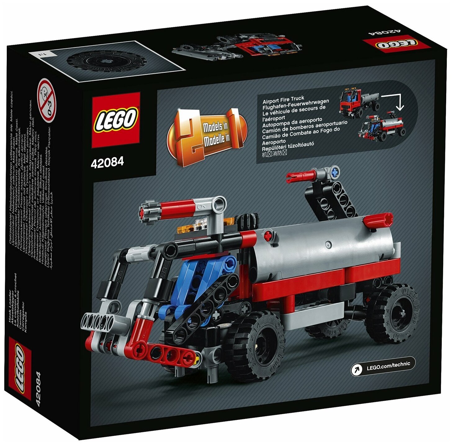 Перевозите тяжелые и сыпучие грузы с помощью мощного погрузчика 2-в-1 серии LEGO® Technic. Эта мощная модель настоящего грузовика с крючковым погрузчиком с кабиной водителя, имеет усиленные шины, большую сигнальную лампу и выполнена в крутой красно-серо-черной гамме. Подъезжай к рабочему месту и включай нагрузочную систему, чтобы опустить контейнер. Затем загрузи контейнер, затяни его на грузовик и вези товар в пункт назначения! Из этого набора можно построить пожарный грузовик в аэропорту.