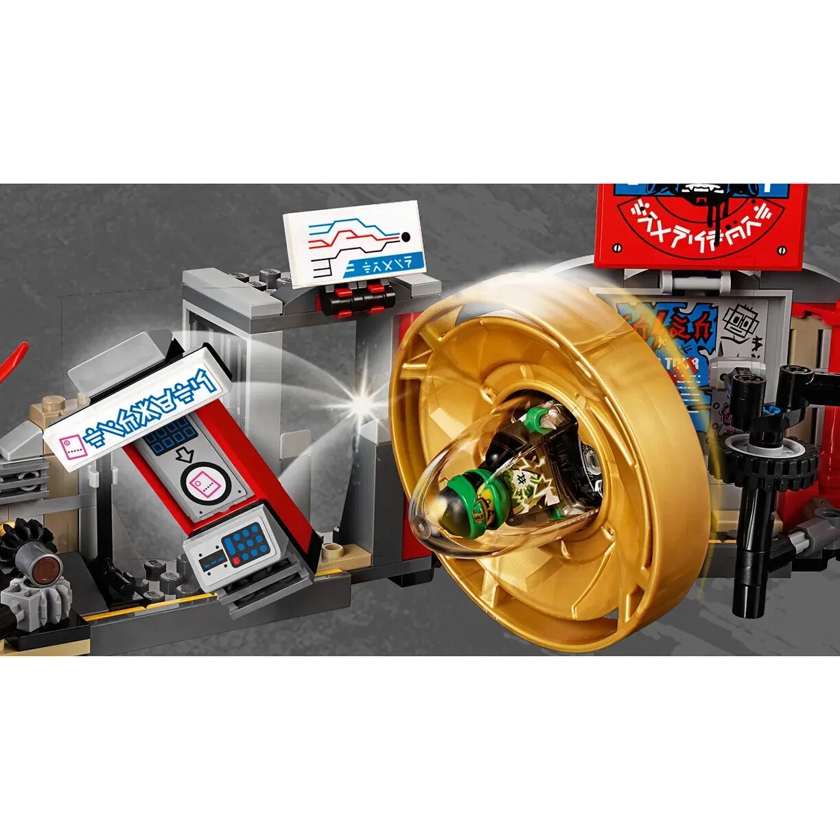 Вот отважный ниндзя уже на месте! Юный любитель приключений должен помочь ему перевернуть банкомат. Однако, стоит быть аккуратным и опасаться подвижных стен и резко выдвигающих лезвий, в подземном додзё довольно мрачно и очень опасно. Еще важно не попасть под удар Ультрафиолета и злодеев на Они-байке. Ллойду предстоит серьезное сражение с Нэйлзом и Зловредным Скипом, а чтобы украсть маску ненависти, нужно прорваться через ворота вновь запрыгнув в спинер.