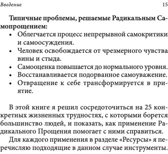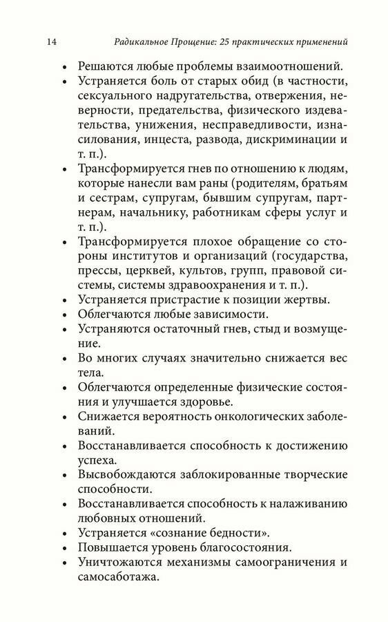 Книга " Радикальное прощение" написана доступным для понимания языком, после прочтения начинаешь мыслить, думать по-другому. В начале книги знакомят с концепцией радикального прощения и 5 этапами. Я очень рада, что приобрела эту книгу. Рекомендую приобрести её тем, кто хочет стать в будущем счастливым человеком.