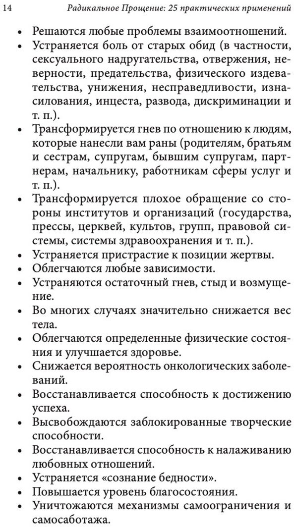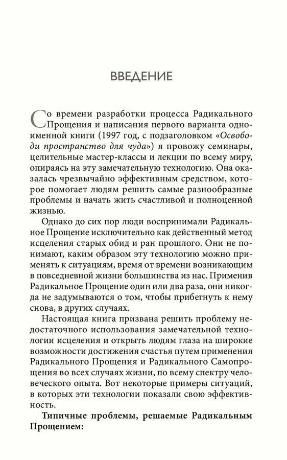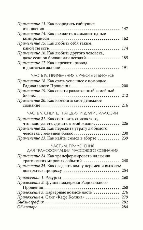 Эту книгу можно читать как дополнение к бестселлерам Колина Типпинга «Радикальное Прощение» и «Радикальное Самопрощение», но она вполне самодостаточна и поможет вам решать многие жизненные проблемы, в основе которых лежит чувство обиды или вины. В первых главах объясняется теория Метода Типпинга, а затем описываются 25 его возможных применений на практике в таких сферах, как семейные отношения, здоровье, бизнес, конфликты, вредные привычки, утрата близкого человека и другие. Книга основана на многолетнем опыте автора, обучившего Радикальному Прощению тысячи людей по всему миру.