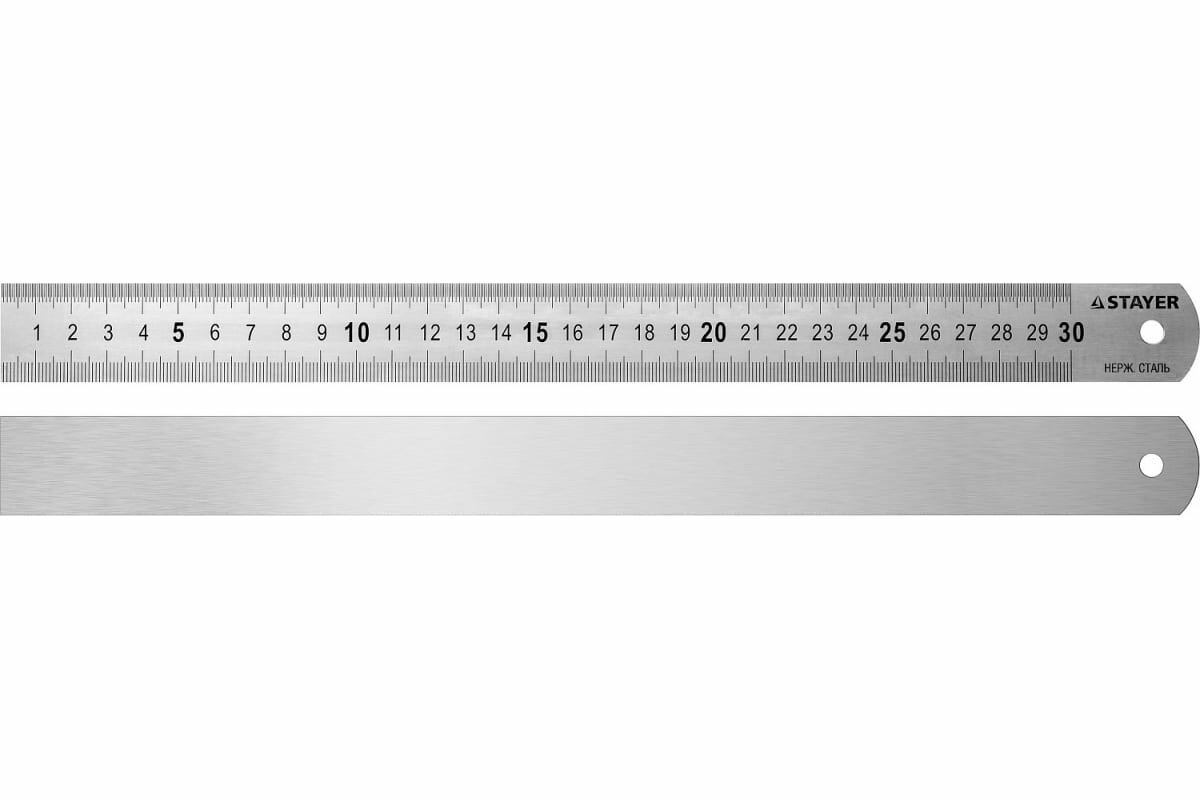 Отличным помощником в проведении всевозможных замеров станет строительная линейка Stayer . Она изготовлена из нержавеющей стали, что гарантирует ее прочность и надежность, а также для удобства имеет двойную шкалу измерения.