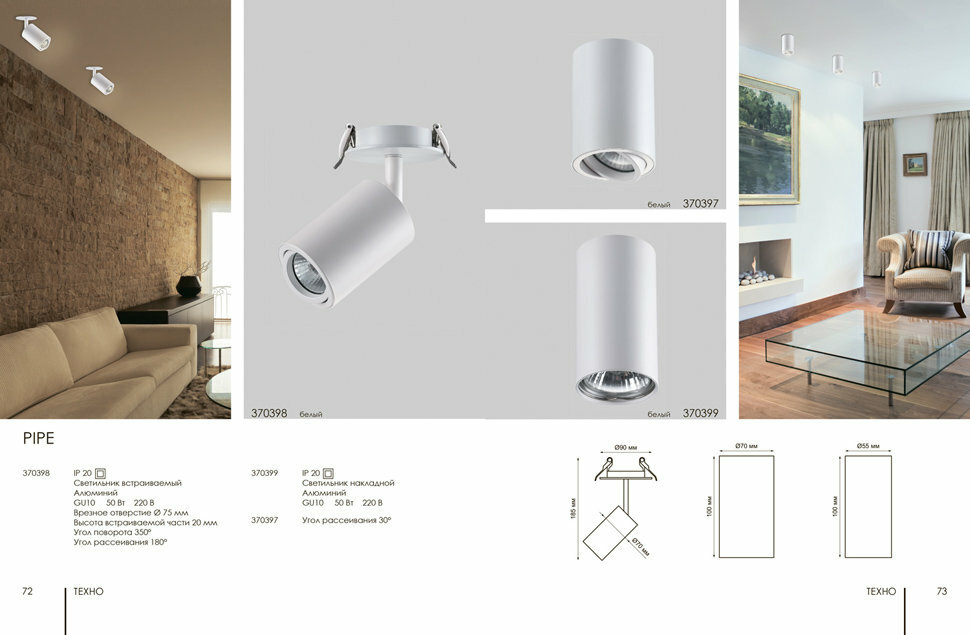 Накладной точечный светильник PIPE - продукт известной компании Novotech (Венгрия). Имеет максимальную мощность 50 Вт, освещает площадь до 4 кв. м. Отлично подойдет для таких мест, как гостиная, кафе, холл, офис, прихожая и коридор. Впишется в интерьеры следующих стилей: модерн.