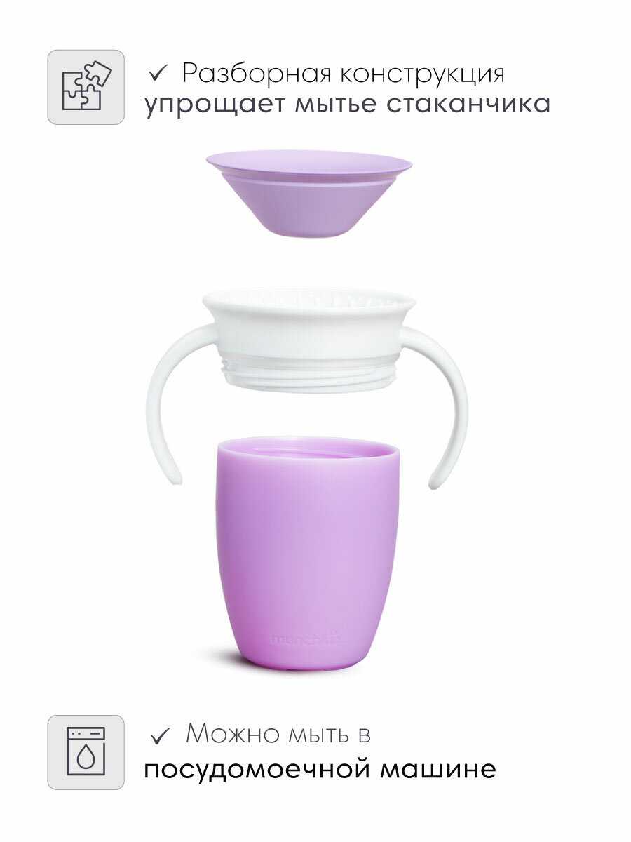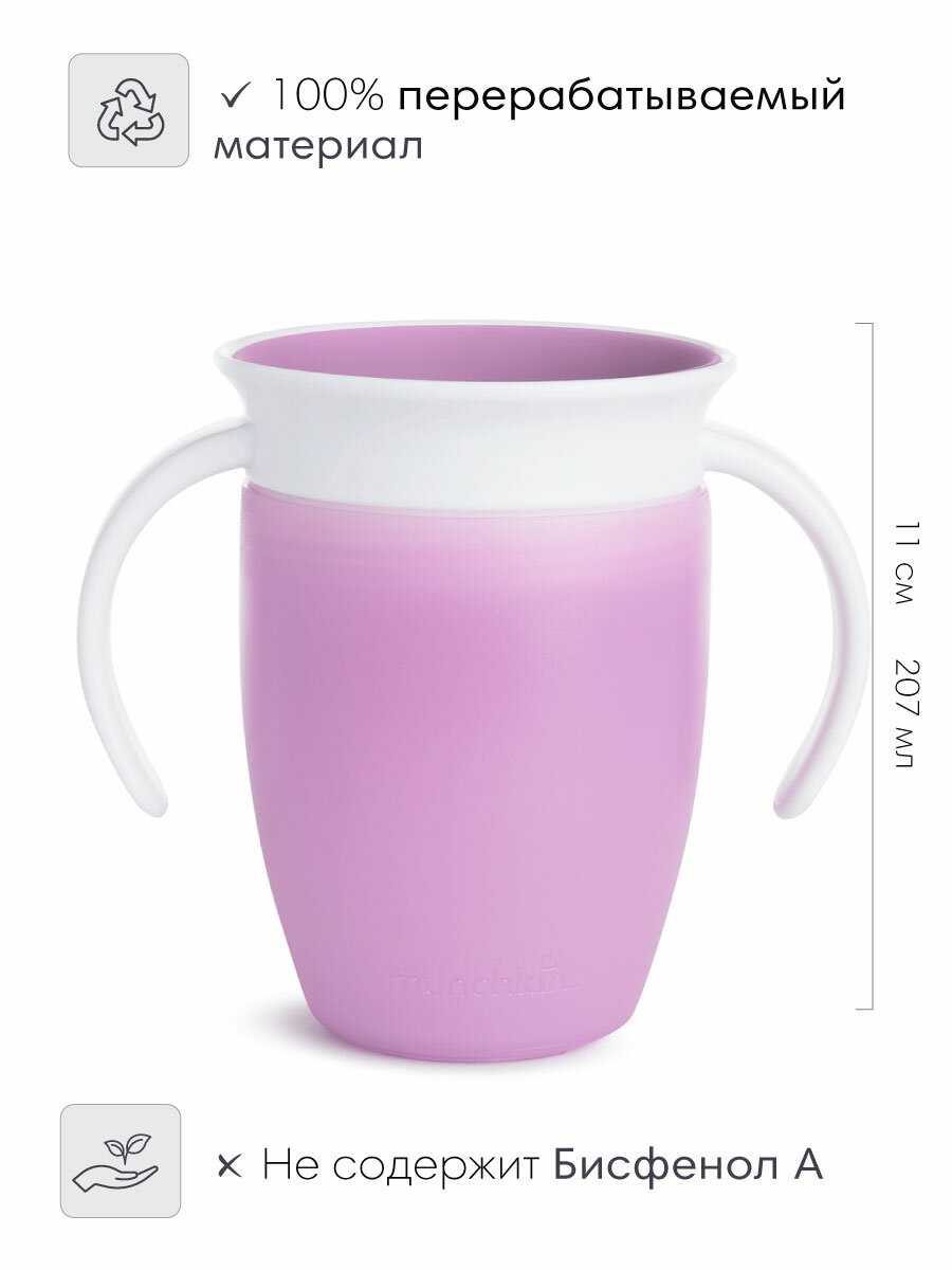 Поильник-непроливайка Munchkin 360 с ручками 207 мл розовый (12094-3)