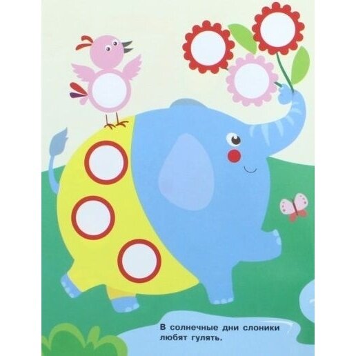 Очень интересная серия. Кружочков много. Подходят для изучения цветов. Дочь наклеивала их не только в книжку. А так в основном клеила туда, куда нужно. По цветам пока не получается, но ей ещё нет 2 лет. Эти книжки подходят для совсем маленьких детей. Кружочки можно отлепить ребёнку самостоятельно. Они удобны для маленьких ручек.
