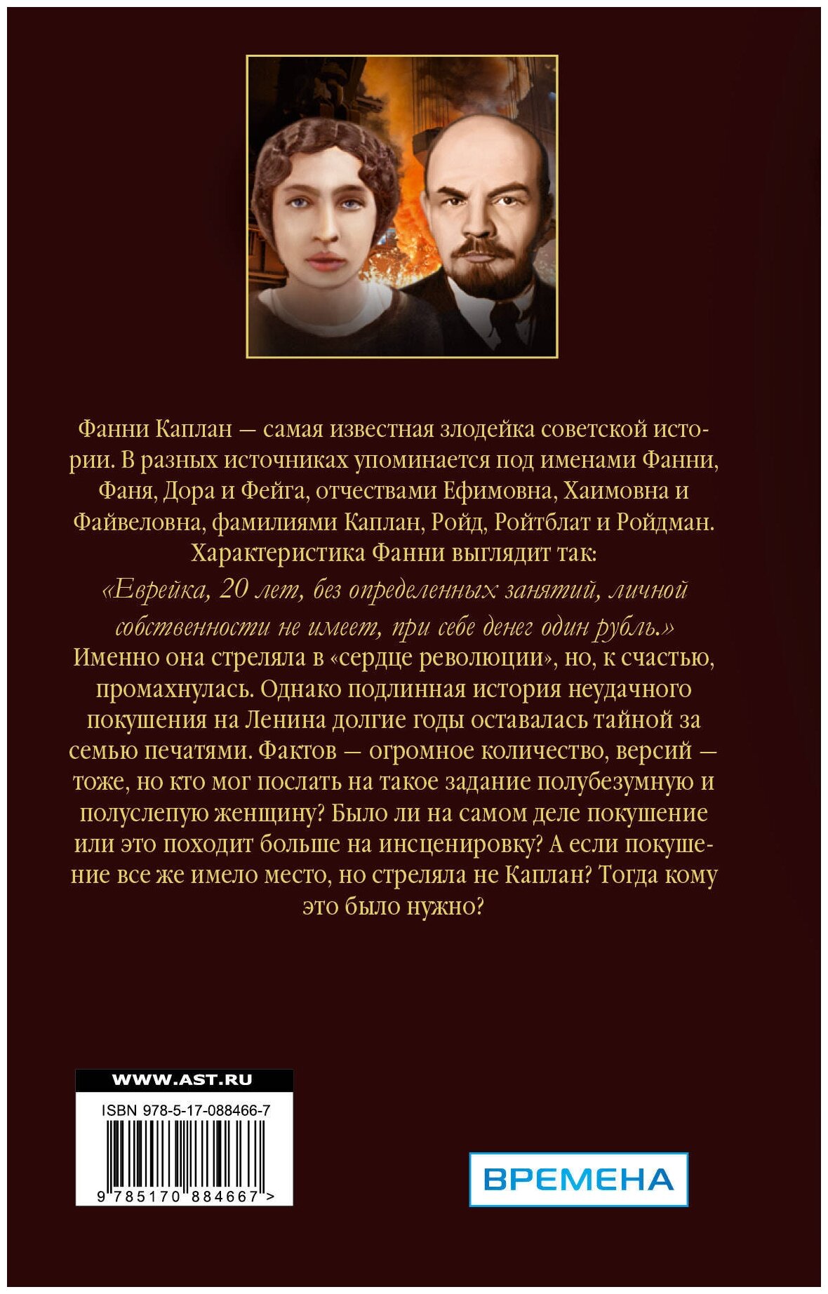 Фанни Каплан – самая известная злодейка советской истории. В разных источниках упоминается под именами Фанни, Фаня, Дора и Фейга, отчествами Ефимовна, Хаимовна и Файвеловна, фамилиями Каплан, Ройд, Ройтблат и Ройдман. Характеристика Фанни выглядит так: еврейка, 20 лет, без определенных занятий, личной собственности не имеет, при себе денег один рубль. Именно она стреляла в «сердце революции», но, к счастью, промахнулась. Однако подлинная история неудачного покушения на Ленина долгие годы оставалась тайной за семью печатями. Фактов — огромное количество, версий — тоже, но кто мог послать на такое задание полубезумную и полуслепую женщину? Было ли на самом деле покушение или это походит больше на инсценировку? А если покушение все же имело место, но стреляла не Каплан? Тогда кому это было нужно?