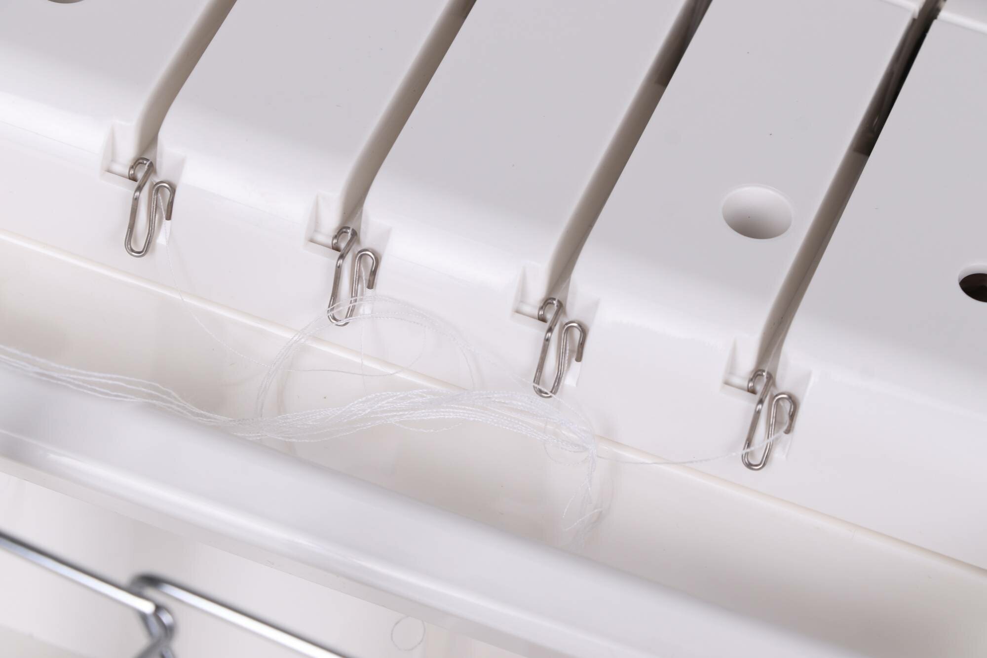 Особенность оверлока Singer 14SH654 Finishing Touch — простая и понятная заправка нитей. На качество обметки не влияют толщина и структура ткани: аккуратные швы получаются как на шифоне, так и на габардине.