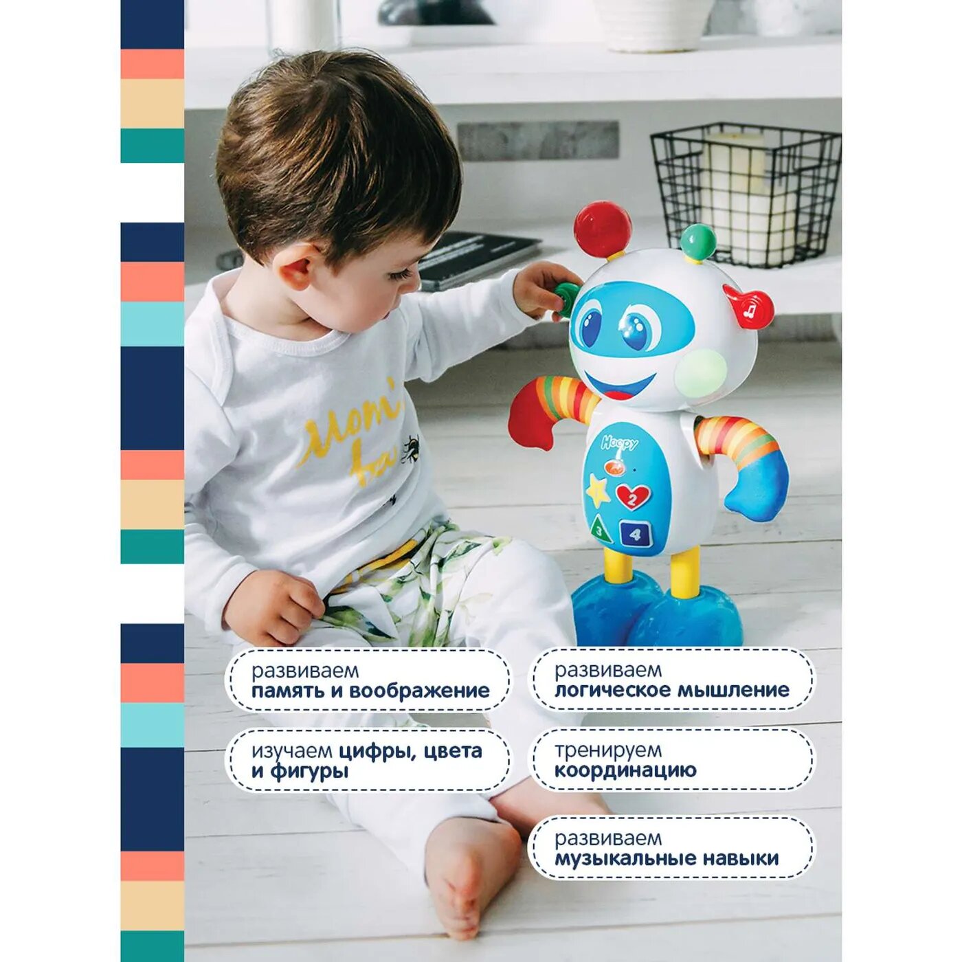 - Ребёнку нравится. Есть, что нажать. Музыка-подпевает. Робот двигается-ребёнок танцует. Голос приятный. Несколько режимов, обучение элементарно: цифры, формы, цвета-на будущее.
