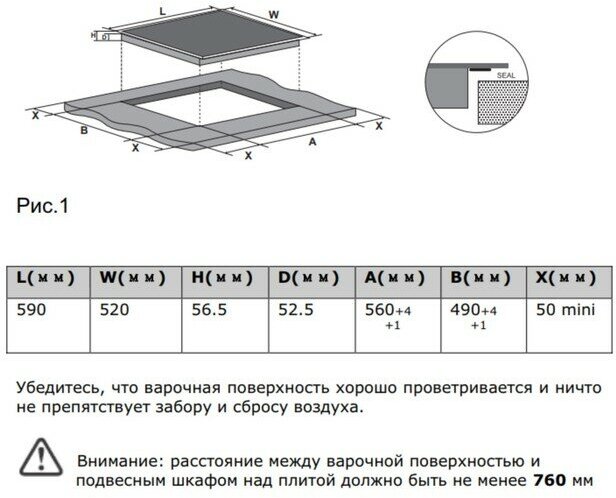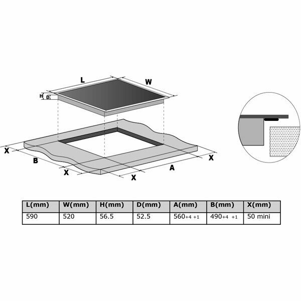 | Размеры для встраивания (ШхГ) | 56 x 49 см |