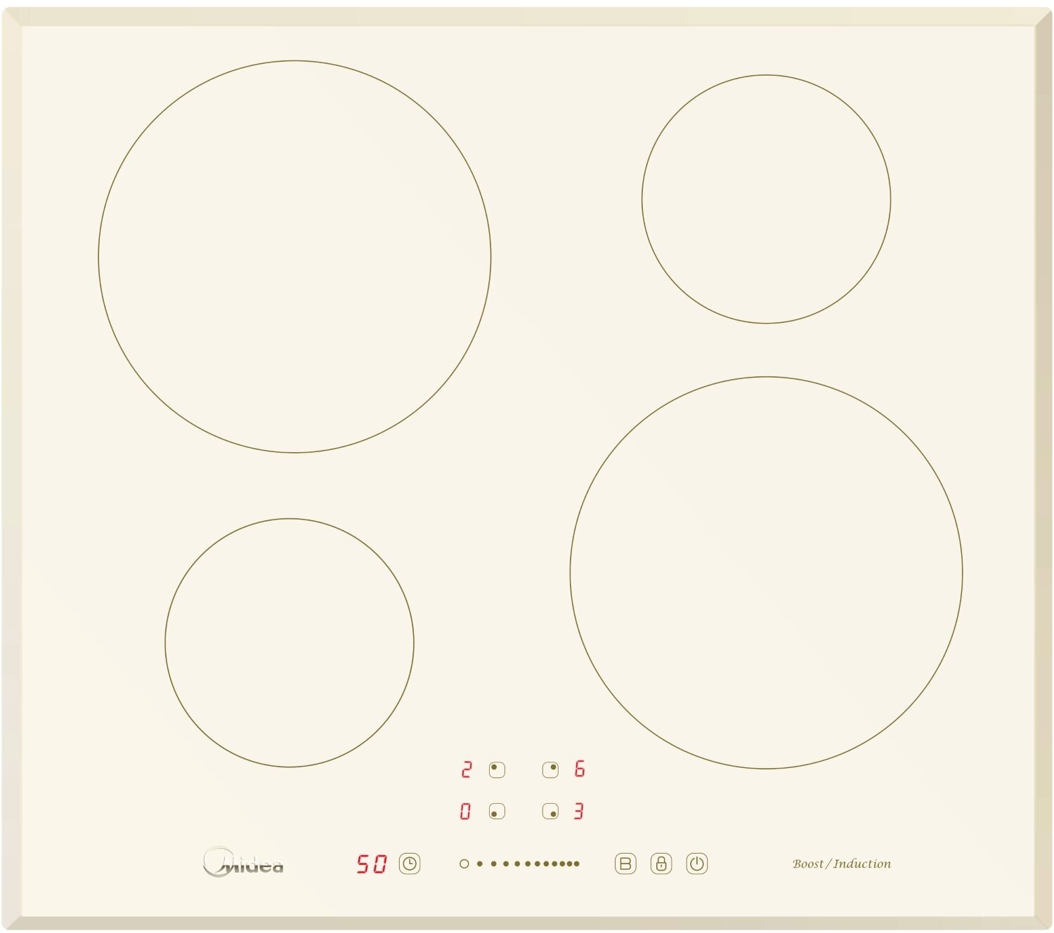 Midea – встраиваемая варочная панель, работающая по индукционной технологии, которая обеспечивает особенно быстрый нагрев. Она оборудована четырьмя конфорками различного размера, поэтому на ней можно одновременно готовить и разогревать несколько блюд. стильный дизайн, несложный уход Поверхность изготовлена из стеклокерамики – материала, обладающего высокой теплопроводностью и устойчивого к механическим воздействиям.