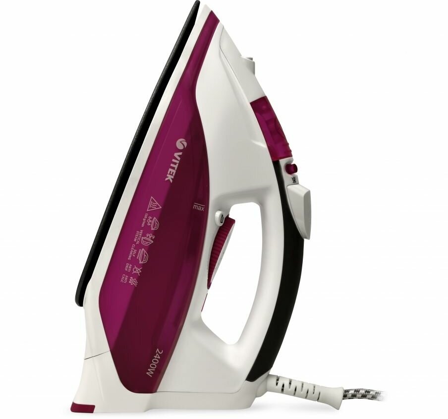 С утюгом VITEK VT-1262 PK глажка перестанет доставлять неудобства. Благодаря инновационному антипригарному покрытию подошва не прилипает к одежде и не оставляет следов. С помощью многочисленных функций вы с легкостью отгладите ткани различной сложности и очистите прибор после использования.