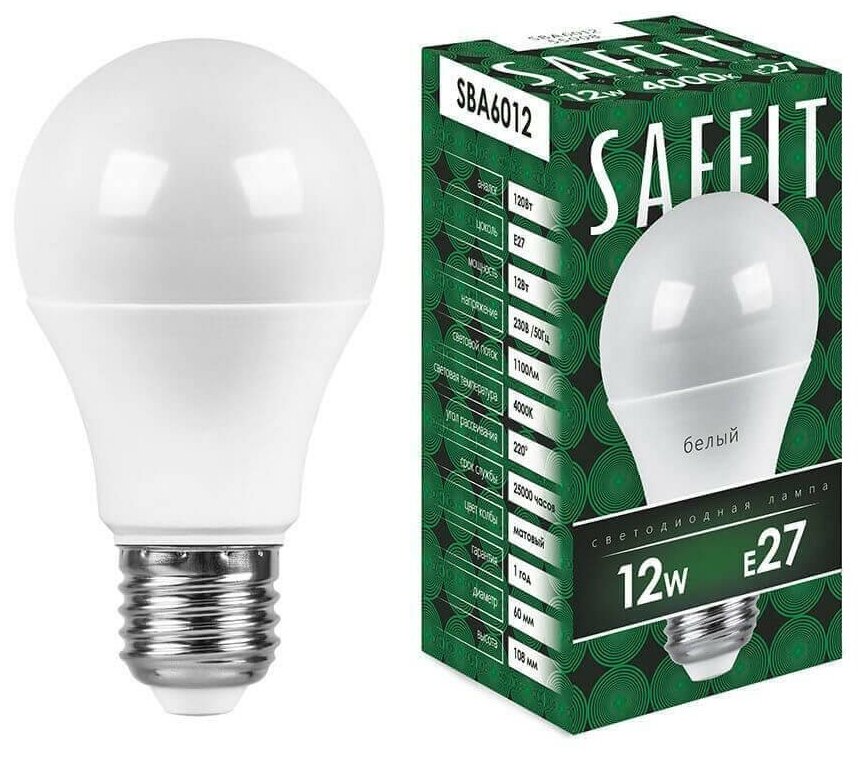 Светодиодные лампы SAFFIT являются современными и экономичными источниками света, предназначенными для бытового применения. Благодаря матовому рассеивателю, свет равномерно распределяется и не слепит глаза.