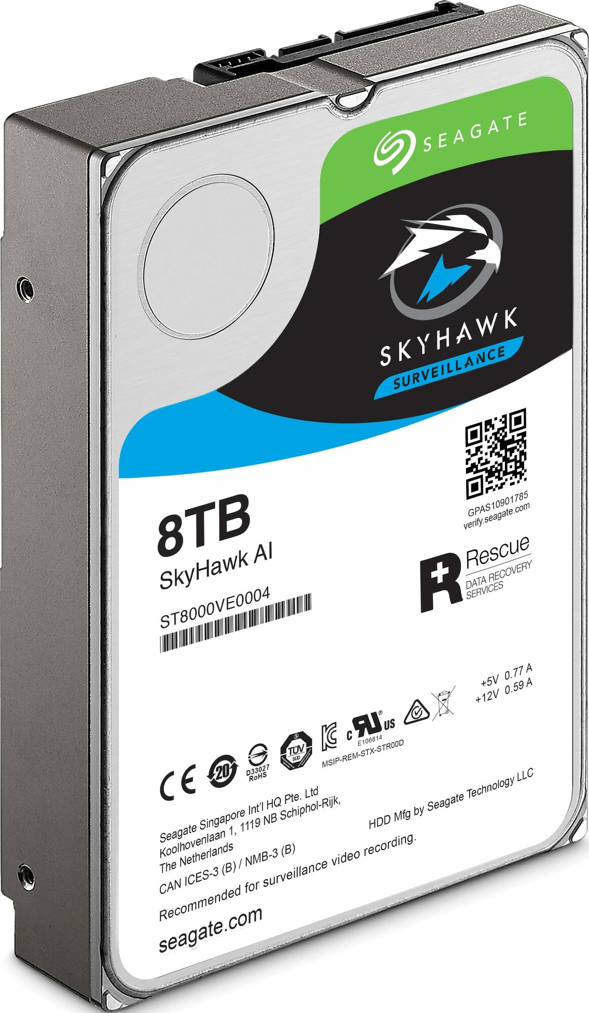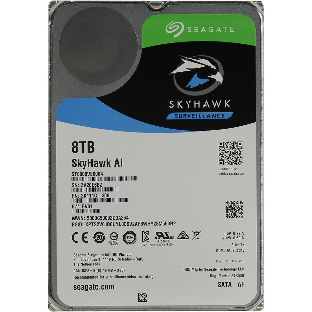 Жесткий диск SEAGATE SkyHawkAI 8Тб HDD SATA III 3.5" ST8000VE0004