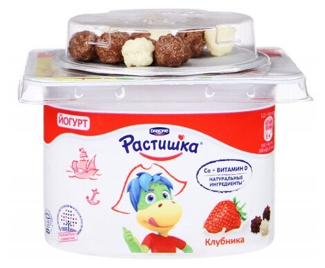 | Состав | молоко нормализованное, фруктовый наполнитель (сахарный сироп, концентрированное пюре клубники; крахмал кукурузный; кальций (кальция цитрат), концентрированные соки красной свеклы, лимона, черной моркови, натуральный ароматизатор; краситель – экстракт паприки; витамин Д3), сахар, йогуртовая закваска. Состав драже |