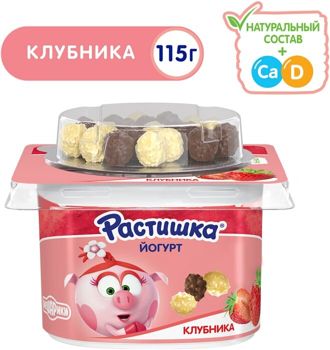 Йогурт Растишка с глазир. драже клубника 3% 115 г