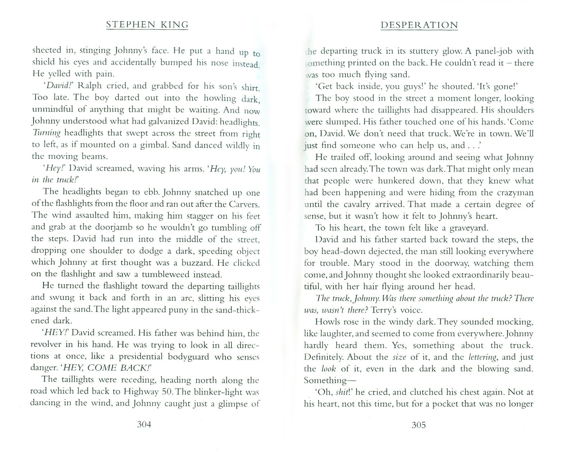 Welcome to Desperation. Once a thriving copper mining town in the middle of the Nevada desert, Desperation is now eerily abandoned. It's the last place that travellers like the Carver family, bound for vacation, and writer Johnny Marinville, astride his Harley, would expect to be stopped and charged. But Desperation still has a local cop - a unique regulator who patrols the wilderness highway.