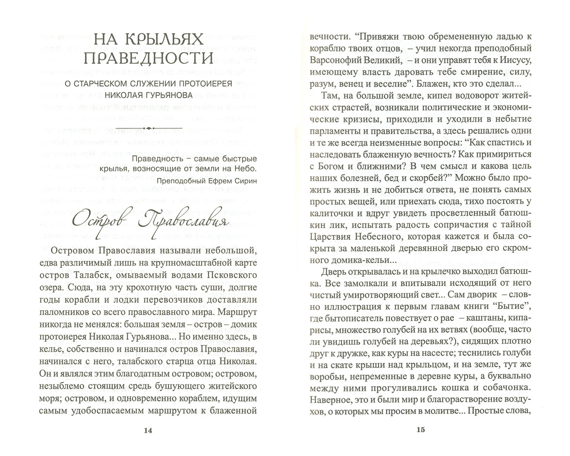 "Эта ваша вера, христоносцы, вера мужественных и дружелюбных предков ваших. Пусть станет она верой и детей ваших!". По сути эти слова замечательного проповедника ХХ века святителя Николая Сербского как нельзя более подходят для того, чтобы стать лейтмотивом настоящей книги. Ибо она - о нашей вере православной, мудрой, красивой и спасительной, и о тех, кто живёт её смыслами, идеями и увлекает нас за собой - христоносцах мужественных и дружелюбных, великих исполнителей Евангельских заповедей, которых Господь воздвигает из среды жизни нашей: отцов духовных наставников и путеводителях, блаженных старцах и старицах, святых Божиих людях и из мирских человек, и из числа священников и монахов. Именно о них - тех, кто идёт впереди нас, рассказывает настоящая книга.