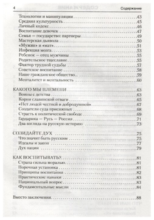 Отдельная глава посвящается описанию русской, советской и российской системы воспитания, начиная от "Домостроя" и заканчивая педагогической деятельностью К. Ушинского, II. Пирогова и Л. Макаренко по воспитанию творческой личности, устремленной к постоянному самосовершенствованию и преобразованию общества.