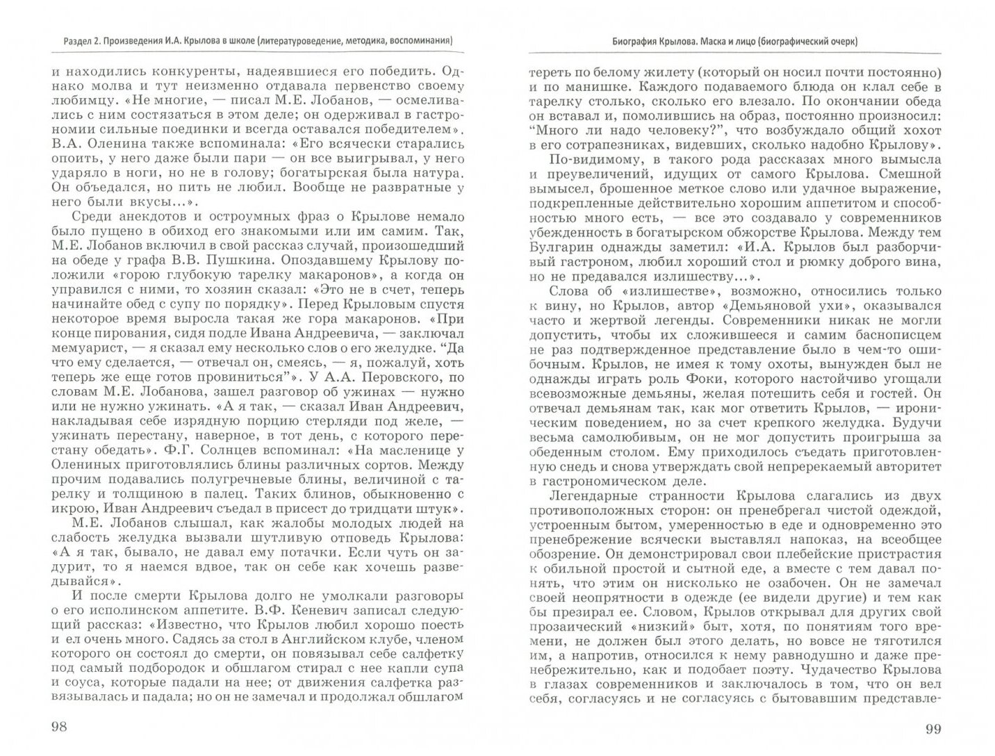 Книга состоит из пяти разделов и электронного приложения, в которые вошли поурочные разработки по изучению фольклора и сочинений русских писателей (И.А. Крылова, М.Е. Салтыкова-Щедрина, Ф.И. Тютчева, А.П. Чехова). В каждом разделе литературоведческие статьи (бумажный вариант) сочетаются с методическими разработками (эл.вариант) и содержат материал, необходимый при изучении произведений на классных и внеклассных занятиях, рекомендации по использованию изобразительного и игрового материалов, воспоминания писателей и современников по той или иной теме.
