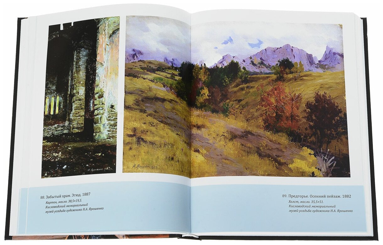 Как истинному таланту, Ярошенко подчинялись разные жанры живописи: портрет, пейзаж, жанровая живопись. Примерно треть этой книги занимают цветные репродукции работ художника (114 иллюстраций).