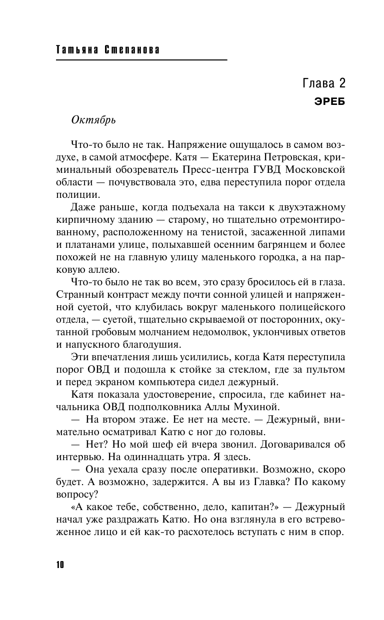 Криминальный обозреватель Пресс-центра ГУВД Московской области Екатерина Петровская приезжает в подмосковный научный городок ЭРЕБ. В греческой мифологии Эреб - это Вечный мрак. Сын Хаоса и Тьмы. Стоит ли удивляться, что в городке происходит серия чудовищных преступлений - зверски убивают женщин, а их тела обряжают в карнавальные костюмы мух. Катя подключается к сложному и опасному расследованию. Руководит им начальница местного ОВД, чья фамилия, по странному совпадению, - Алла Мухина. И в первый же день Катя знакомится с харизматичным экс-космонавтом Константином Чеглаковым, который пишет страшные картины открытого космоса. Именно в его доме Катя сталкивается с первой загадкой, подброшенной щедрым на тайны Эребом…