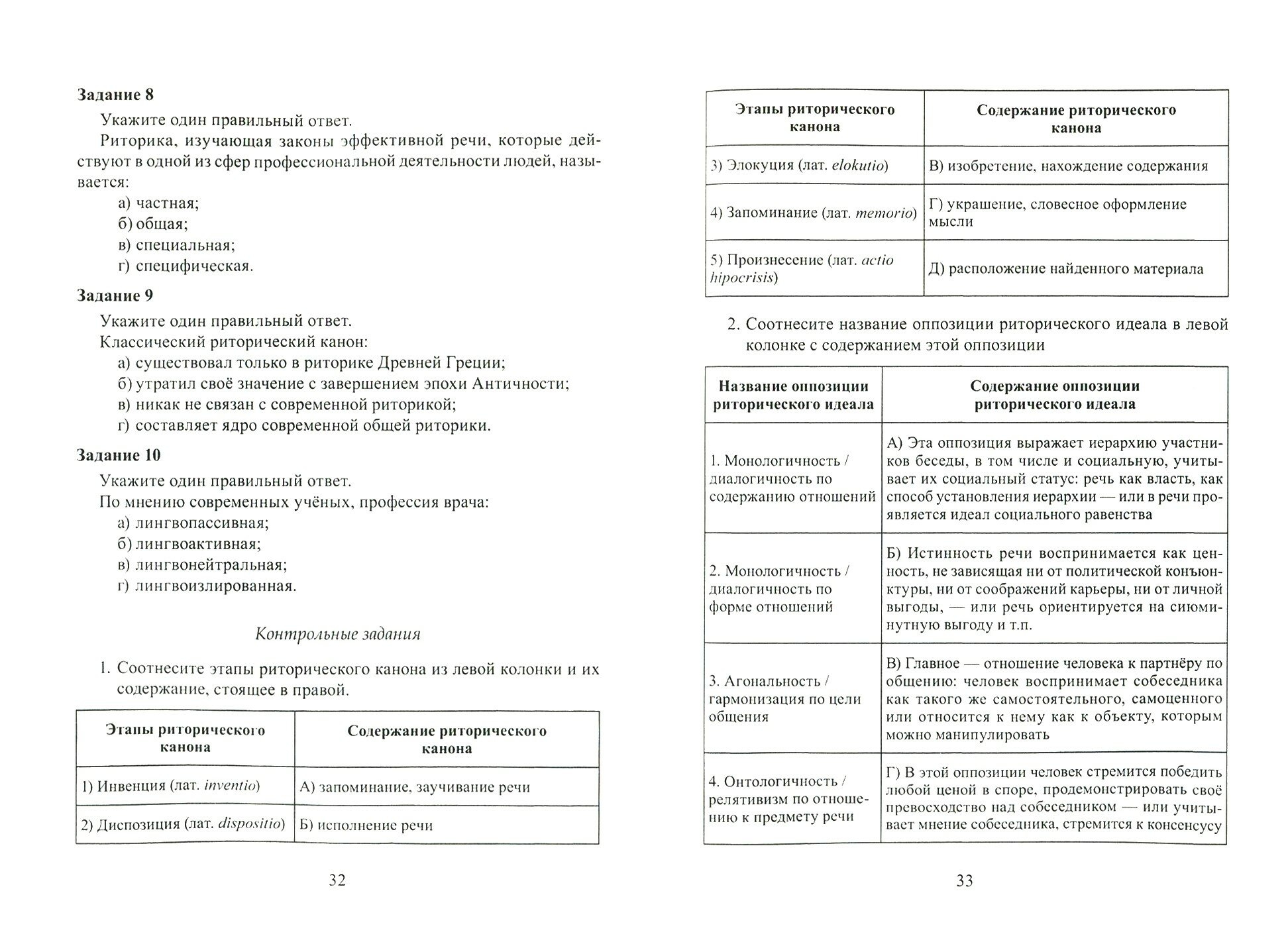 Учебное пособие подготовлено в соответствии с Федеральным государственным образовательным стандартом и учебным планом специальности 31.05.01 "Лечебное дело". Пособие включает теоретический и практический материал, способствующий формированию профессиональных интеллектуальных и речевых умений врача, монологических и диалогических. Он отражен в разделах "Классический риторический канон как база формирования речемыслительной культуры врача" и "Общение в структуре повседневной и профессиональной деятельности врача". Содержание базируется на основах риторики, но при этом ориентировано на медицинскую сферу и включает, например, вопросы реализации смысловых моделей-топов в профессиональных текстах, роль метафор в медицинской терминологии, характеристику основных и вспомогательных коммуникативных речевых стратегий в беседе врача и пациента, правила речевого этикета врача, специфику консилиума как вида дискуссии и другие. После каждой темы даны вопросы для самоконтроля, тестовые и контрольные задания, список основной и дополнительной литературы. В конце пособия помещен словарь основных терминов, приведены ответы к тестовым и контрольным заданиям, дан список тем для самостоятельного создания речей.