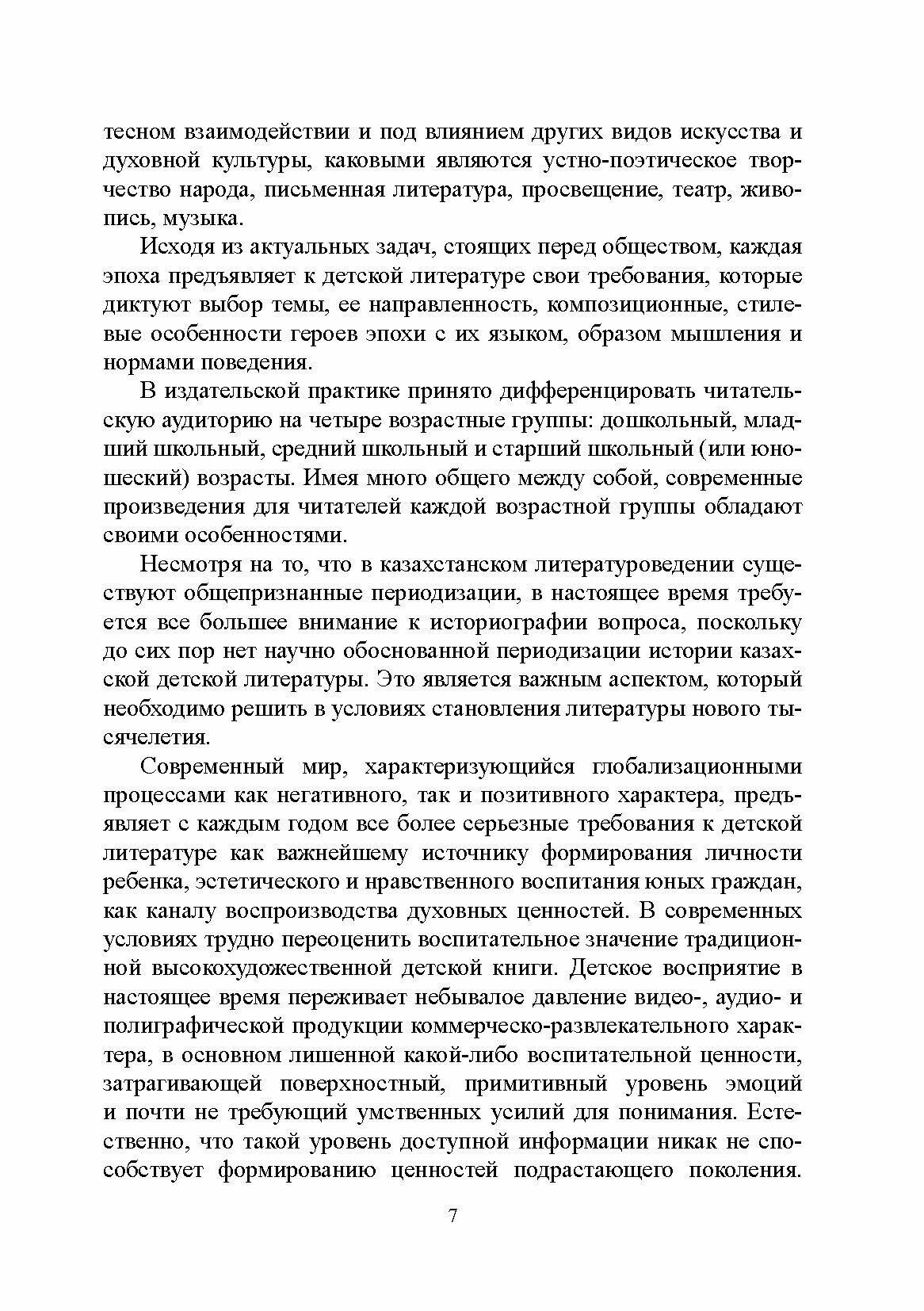 Книга посвящена проблемам детского чтения и детской литературы в Казахстане; охватывает дискуссионные вопросы, касающиеся развития читательского интереса, а также включает анализ книжного рынка, в частности, издания оригинальной и переводной литературы для детей. Авторы монографии предлагают свое видение состояния и перспектив развития детской литературы в Казахстане и мире, а также предлагают пути решения проблем, связанных с культурой детского чтения.