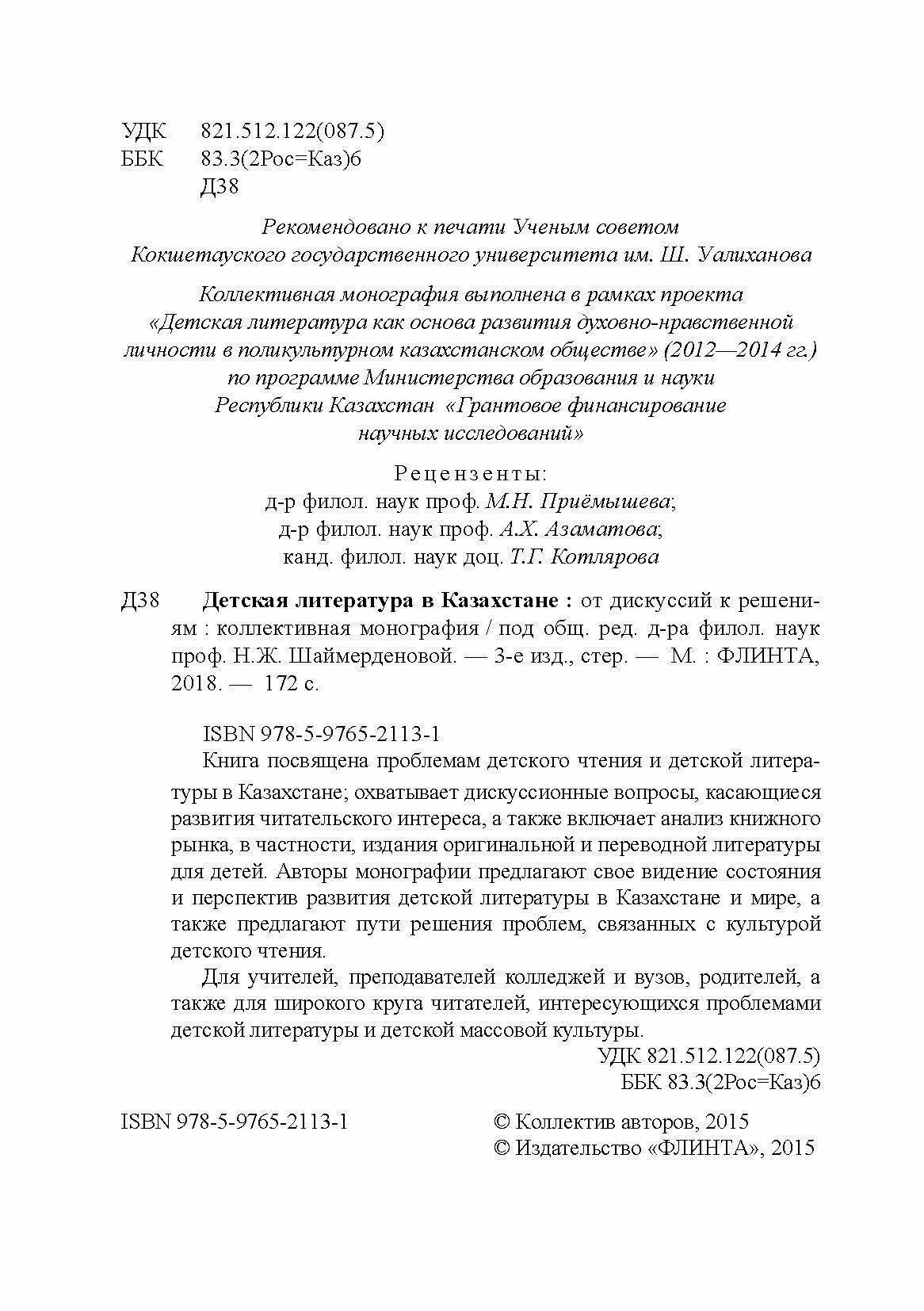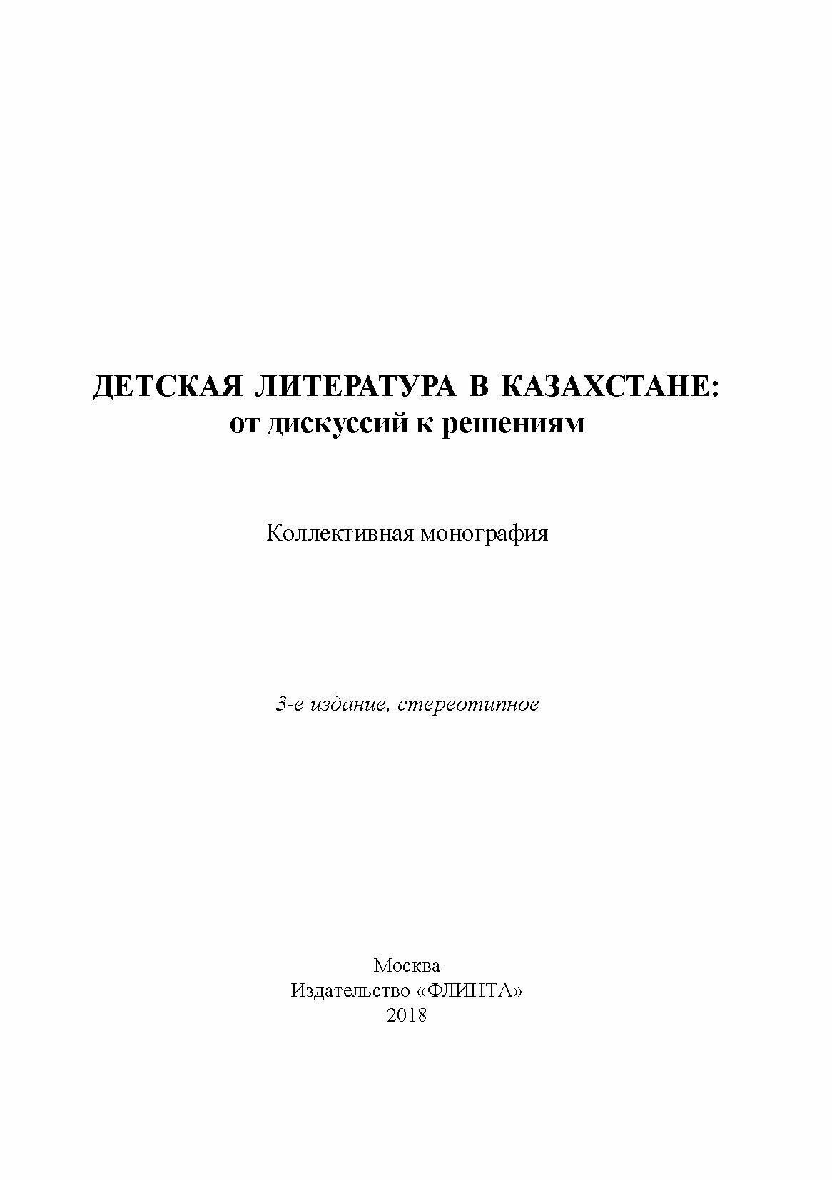 Детская литература в Казахстане. От дискуссий к решениям. Коллективная монография (Шаймерденова Нурсулу Жамалбековна, Анищенко Ольга Александровна, Аманжолова Джемма Болатовна); Флинта, 2018