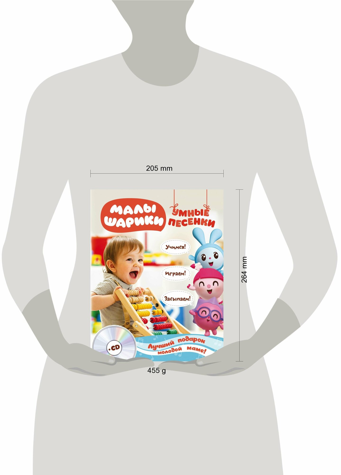 Ваш малыш обожает Малышариков? Просит включить мультфильм снова и снова, и с утра до вечера напевает "Умные песенки"? Тогда эта книжка для вас! Внутри советы, игры и рекомендации педагогов и психологов, работающих над созданием проекта "Малышарики". А ещё диск с "Умными песенками" на все случаи жизни! Включайте дома или в дороге и пойте вместе с малышом. О животных и транспорте, о формах и овощах, о волшебных словах и волшебном празднике, - Новом годе. Вместе с любимыми песенками и персонажами ребёнок легко и весело научится убирать игрушки, соблюдать режим дня, засыпать в своей кроватке и многому другому. Слушайте, пойте, читайте, играйте и растите большими и умными!