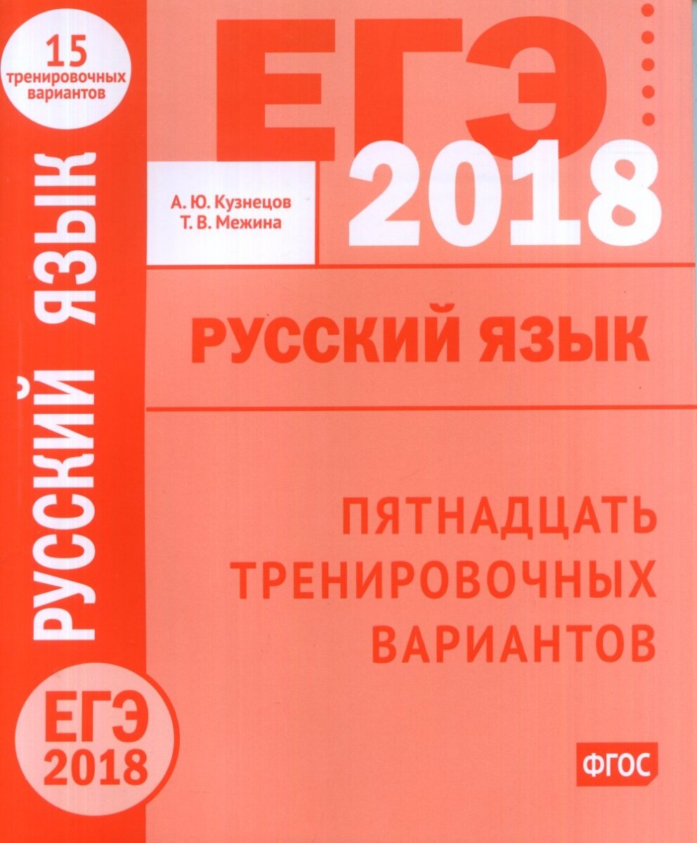 ЕГЭ-2018 году. Русский язык. Пятнадцать тренировочных вариантов ФГОС (Межина Татьяна Владимировна, Кузнецов Андрей Юрьевич); МЦНМО, 2018