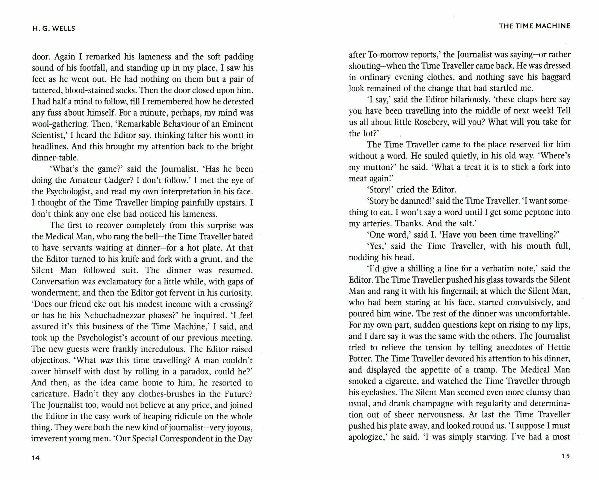 HarperCollins is proud to present its incredible range of best-loved, essential classics. "In a moment I was clutched by several hands, and there was no mistaking that they were trying to haul me back . You can scarce imagine how nauseatingly inhuman they looked - those pale chinless faces and great, lidless, pinkish-grey eyes!" An English scientist regales his dinner guests with the tale of his travels to the year 802,701, where he discovers that the human race has evolved into two distinct societies. The Eloi, elegant and peaceful, yet lacking spirit, are terrorised by the sinister, light-fearing Morlocks, who live underground, surrounded by industry. And when his time machine mysteriously vanishes, the scientist must descend to the realm of the Morlocks in order to find his only hope of escape . H. G. Wells is considered a founding father of modern science fiction, coining the term 'time machine' and popularising the idea of time travel in literature.