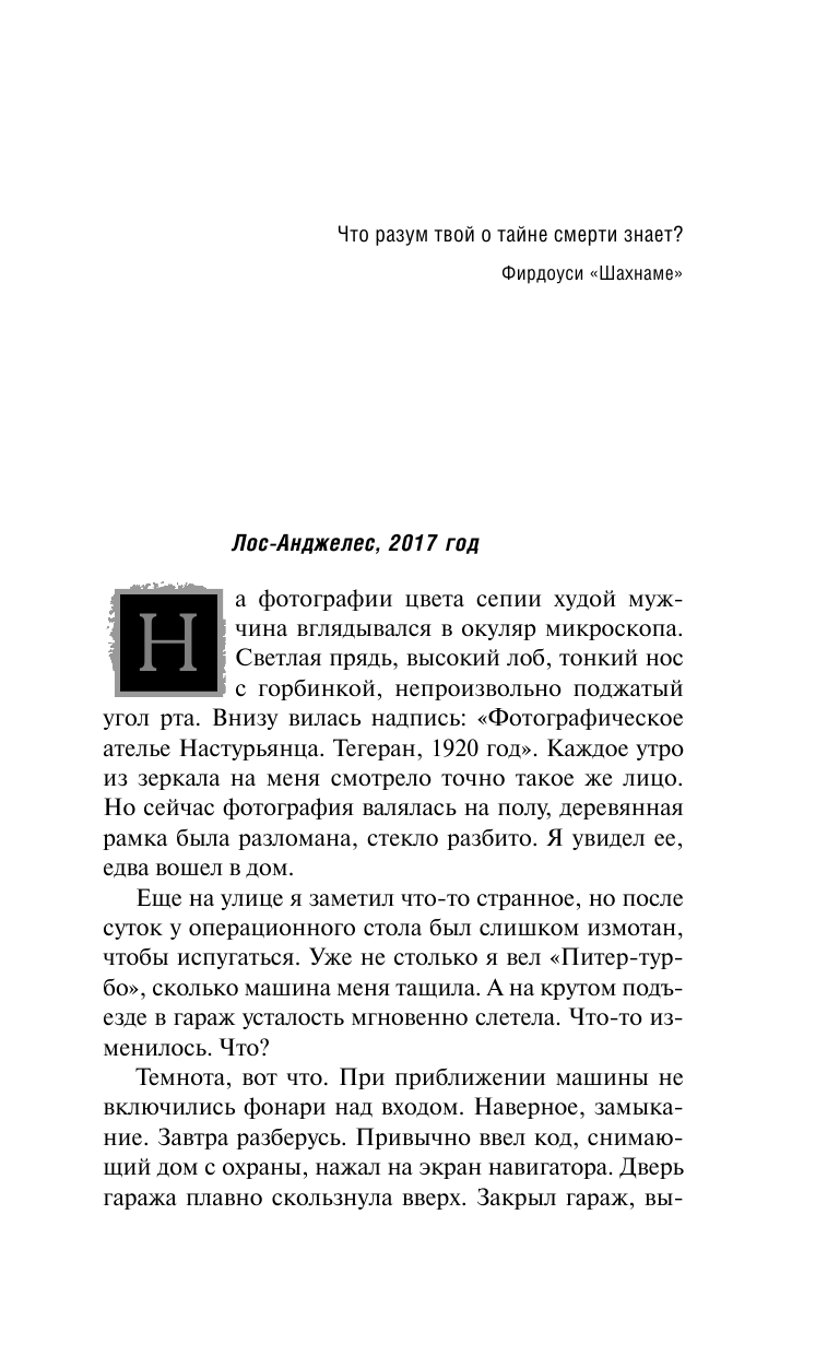 Книга очень выделяется из этой серии, я бы даже сказала, что она не совсем подходит к ней. В романе нет обычной мистической составляющей, а роль артефакта, вокруг которого разворачивается вся интрига, играет "газырь", сувенир, подаренный иранским шахом и бережно сохраненный в семье русских эмигрантов. В книге умело закрученная интрига, две переплетающиеся сюжетные линии, события происходят то в Иране в 1920 году, то в 2017 в Лос-Анджелесе. Написано неплохим языком, хотя все-таки чувстуется, что автор давно живет в Америке, некоторые фразы построены непривычно, присутствуют в тексте и странные обороты, употреляются не часто используемые в русском языке иностранные слова. Тем не менее, книгу прочитала с интересом.